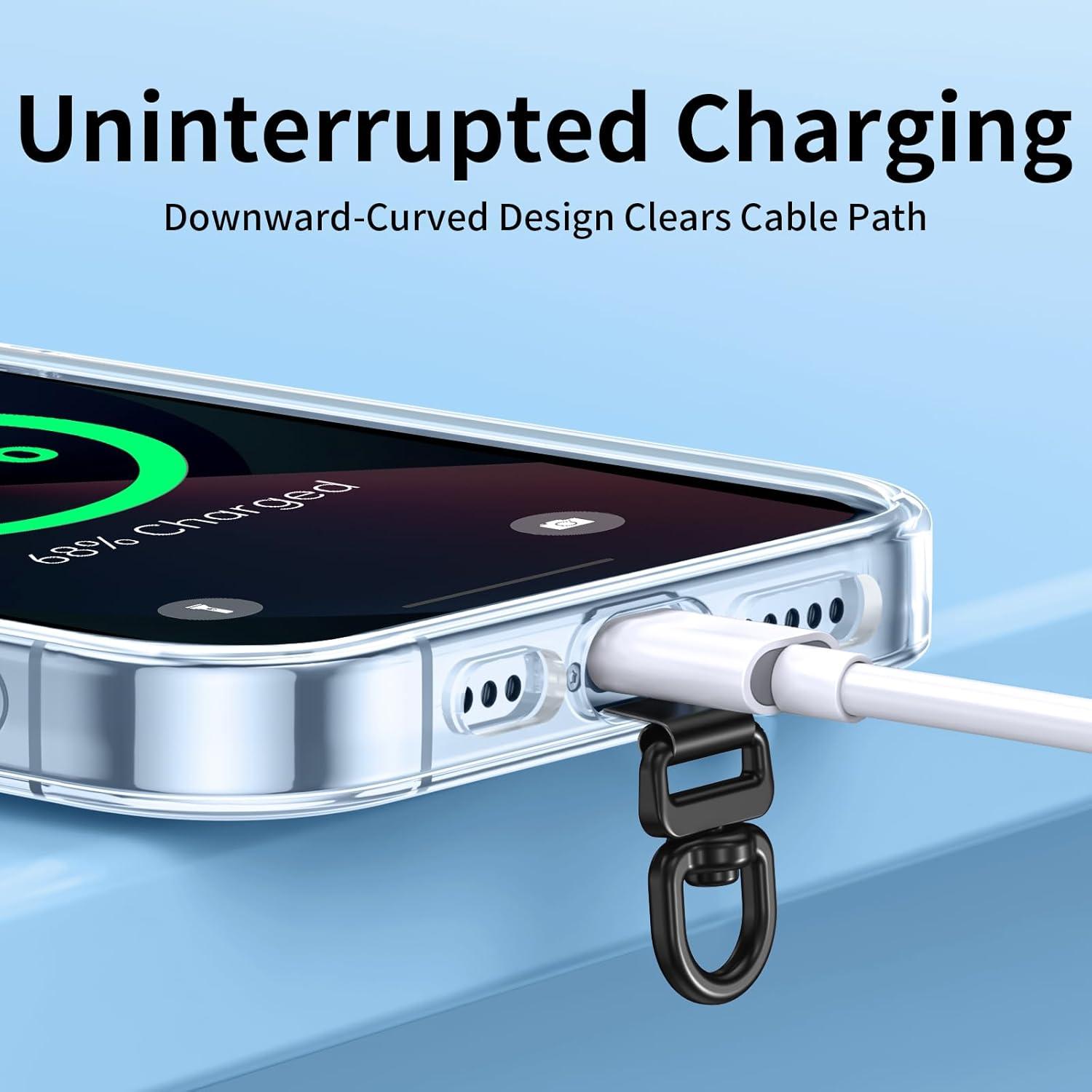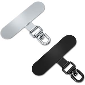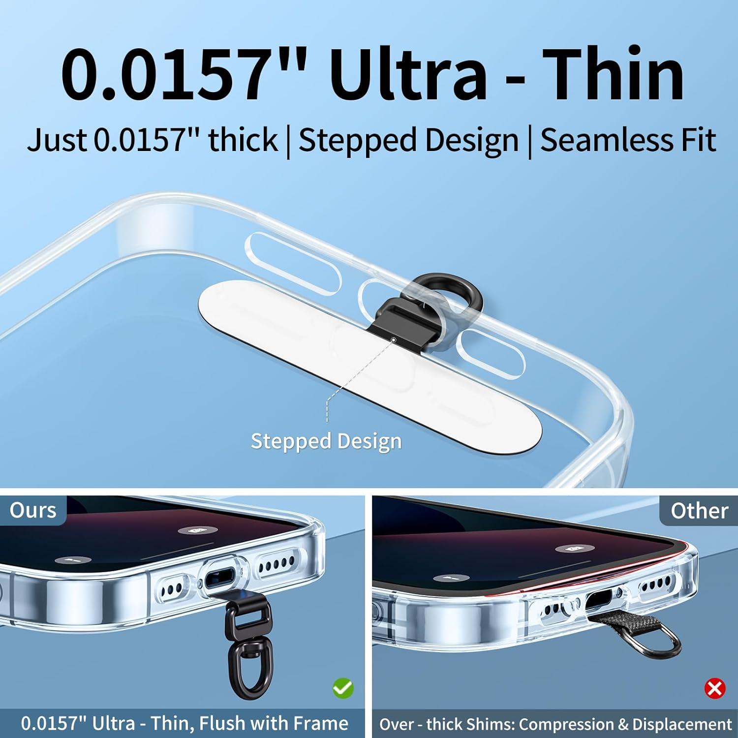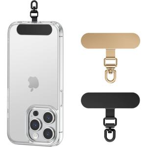Phone Lanyard Tab, 2-Ring Metal Tether Tab for iPhone – Ultra-Thin Stainless Steel Cell Phone Lanyard Patch, No Block Charging Port, Anti-Loss Strap Attachment (Champagne Gold+black)(Fashion Silver+black)