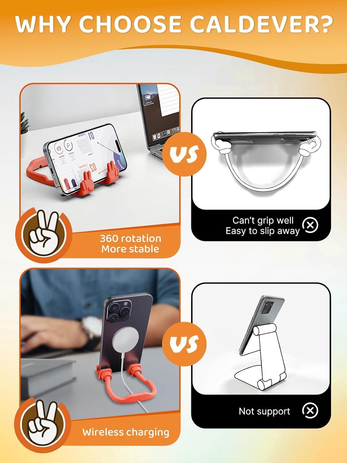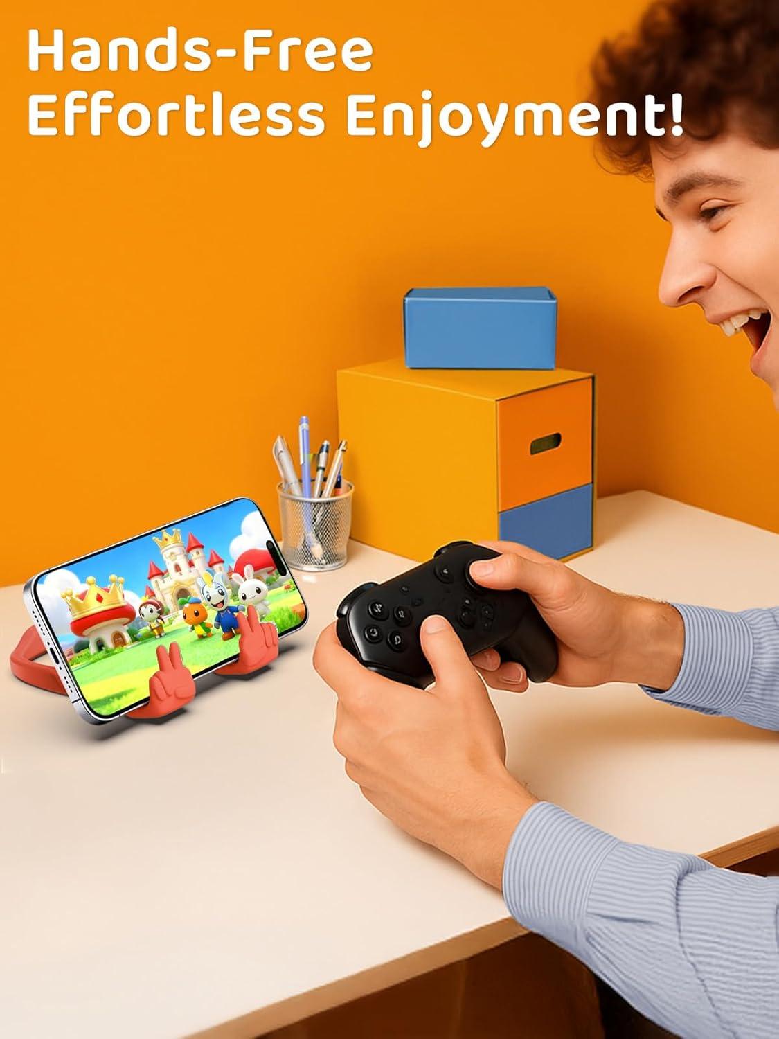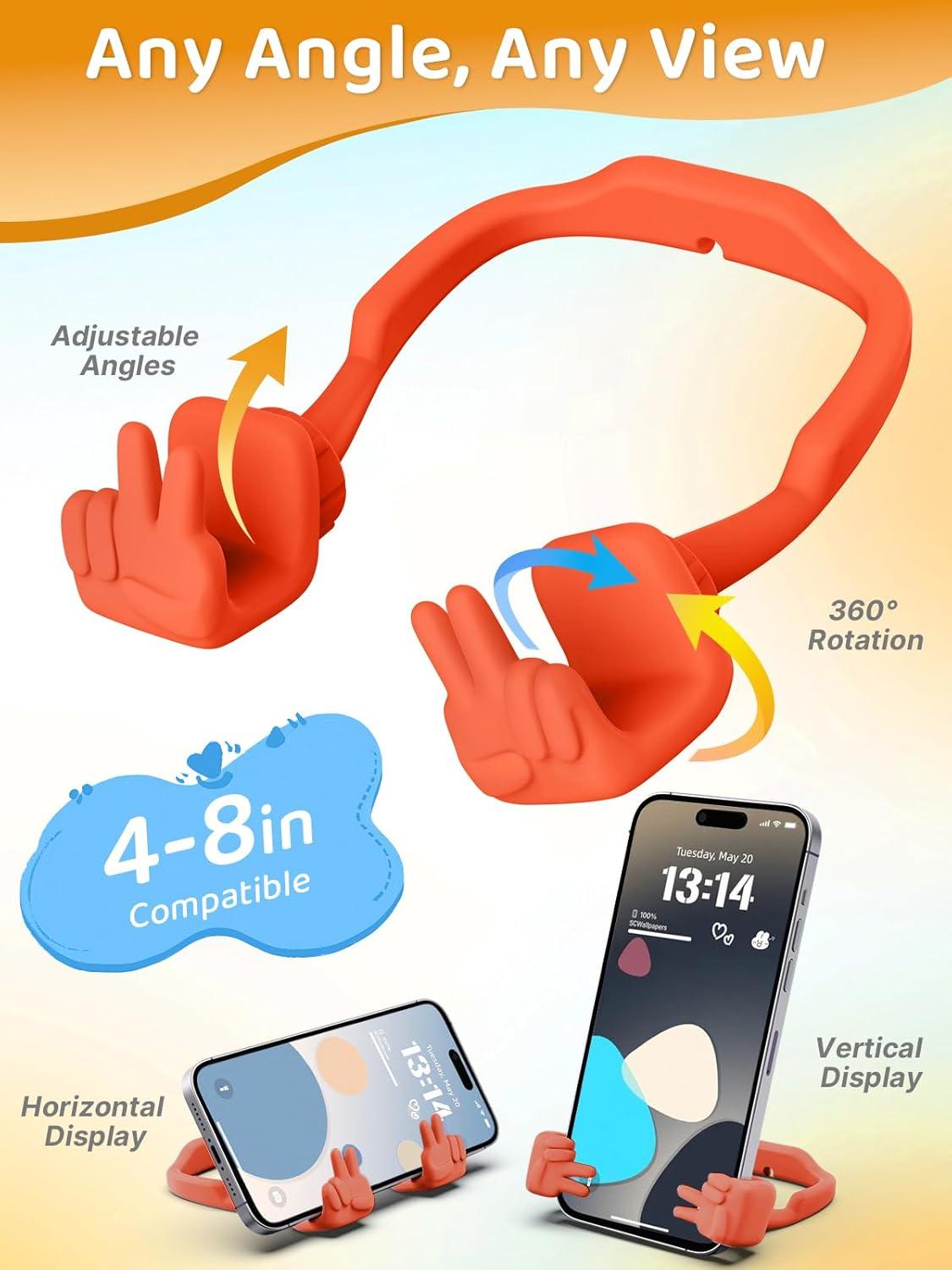 Cell Phone Stand Stocking Stuffers for Teens Boys Girls Kids Gifts: Upgrade Adjustable Peace Sign Thumbs Lazy Cell Phone Holder for Desk Cool Gadgets Birthday Gifts for Women Men Teenage Adults Wife(Orange Red)
