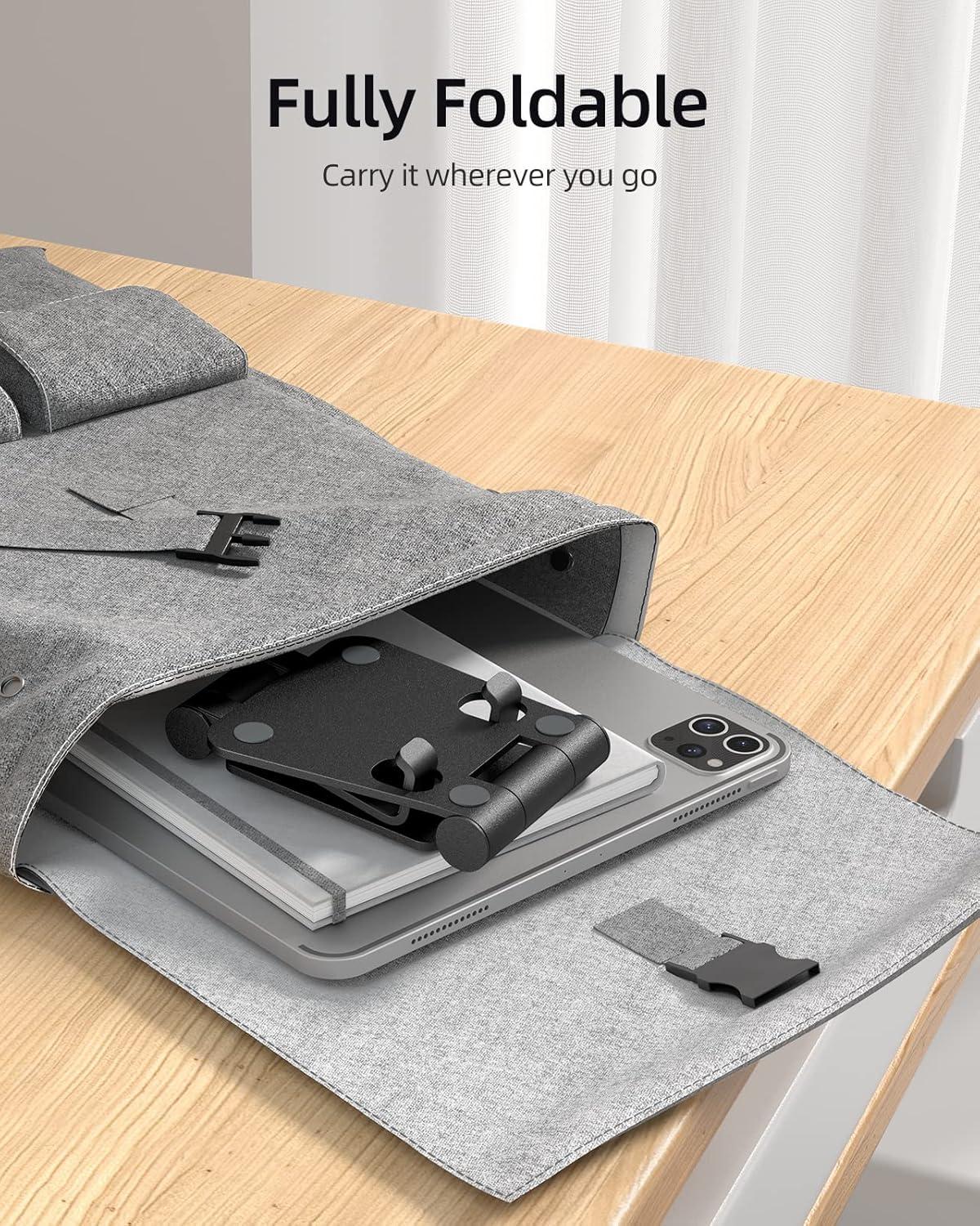 OMOTON Upgraded Adjustable Tablet Stand Holder, Heavy Duty Foldable Portable Monitor Stand, Travel Essentials for iPad Pro/Air/Mini, Surface Pro, 4.7”-15.6′, Black(Black)