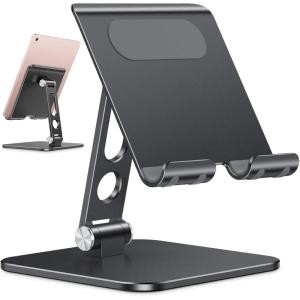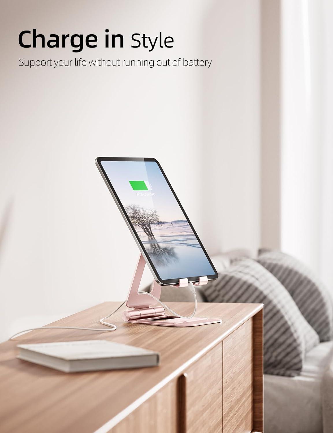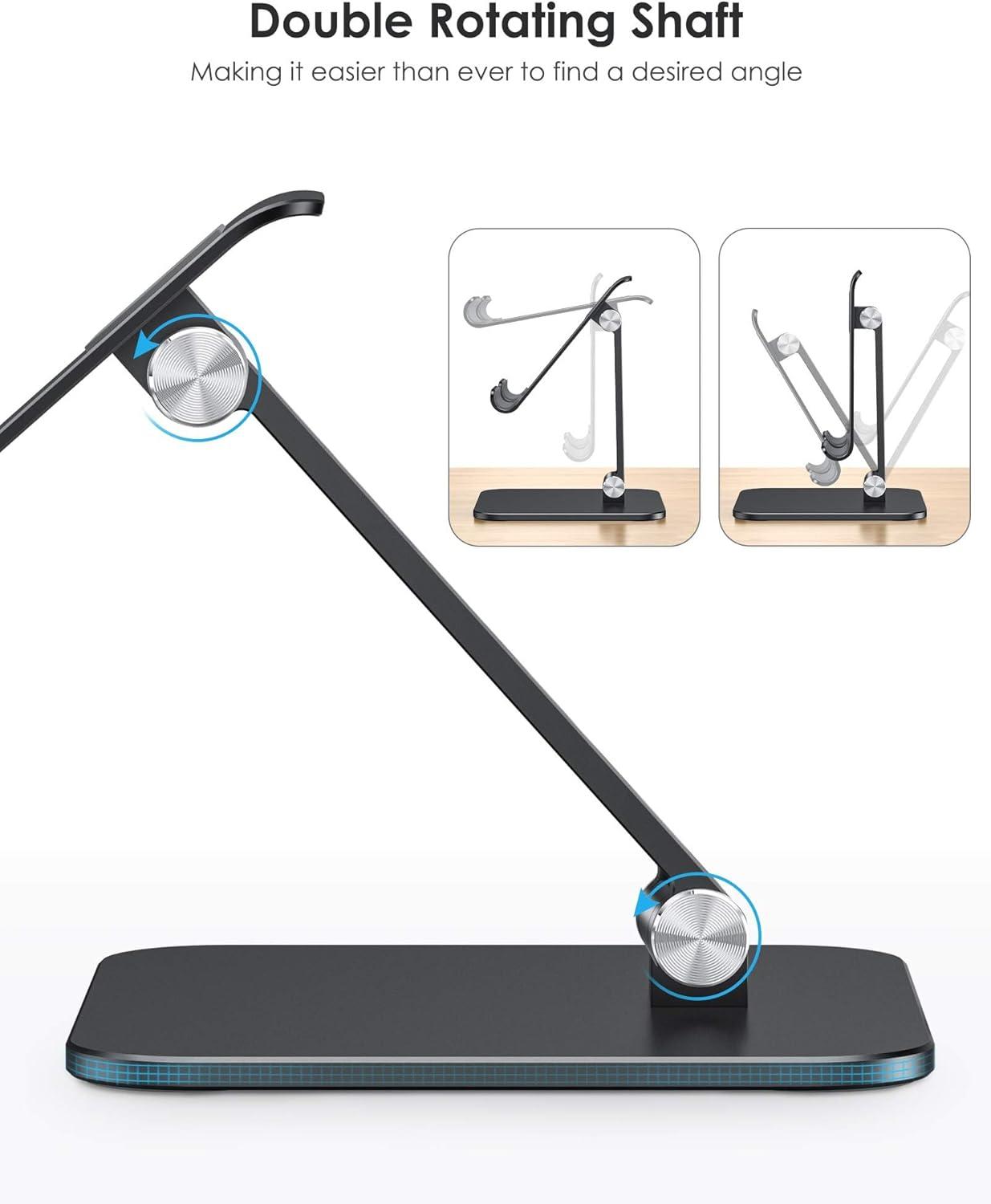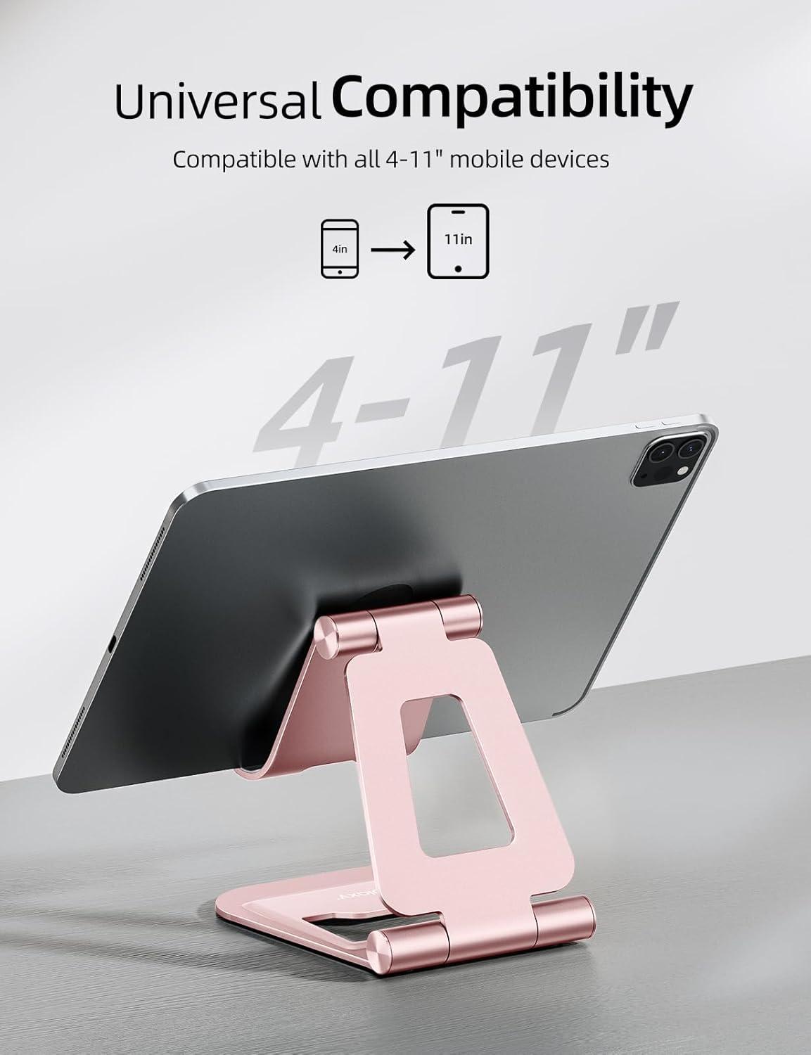 Nulaxy Aluminum Dual Foldable iPad Stand, Fully Adjustable Desktop Tablet Holder, Tablet Accessories for Office Kindle Compatible with Mobile Devices iPad Pro/Air/Mini, iPhone Pro/Max/Plus, Black(C-Rose Gold)