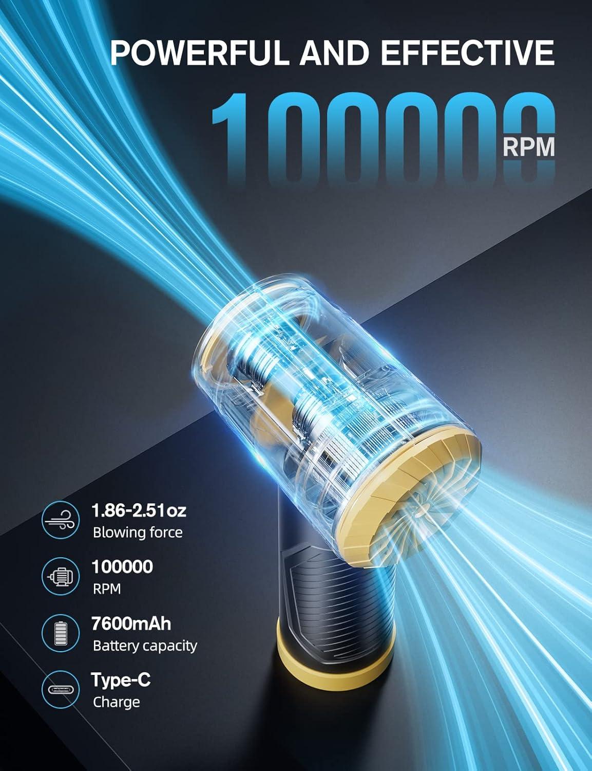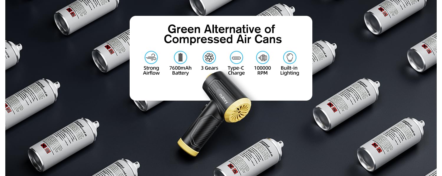 Nulaxy CV12 Compressed Air Duster, 100000RPM Keyboard Cleaner, Good Replace Canned Air Duster, Reusable Cordless Electric Air Duster for Cleaning Dust, Hairs, Crumbs, Scraps for Laptop, Computer