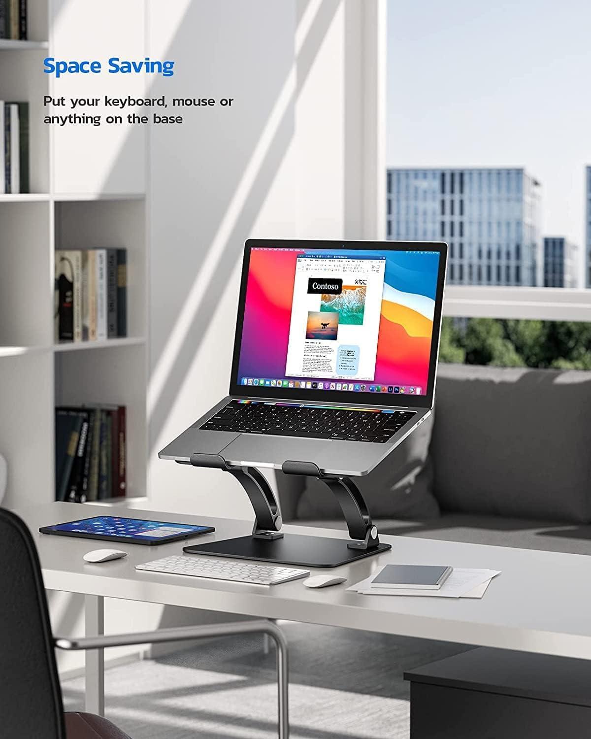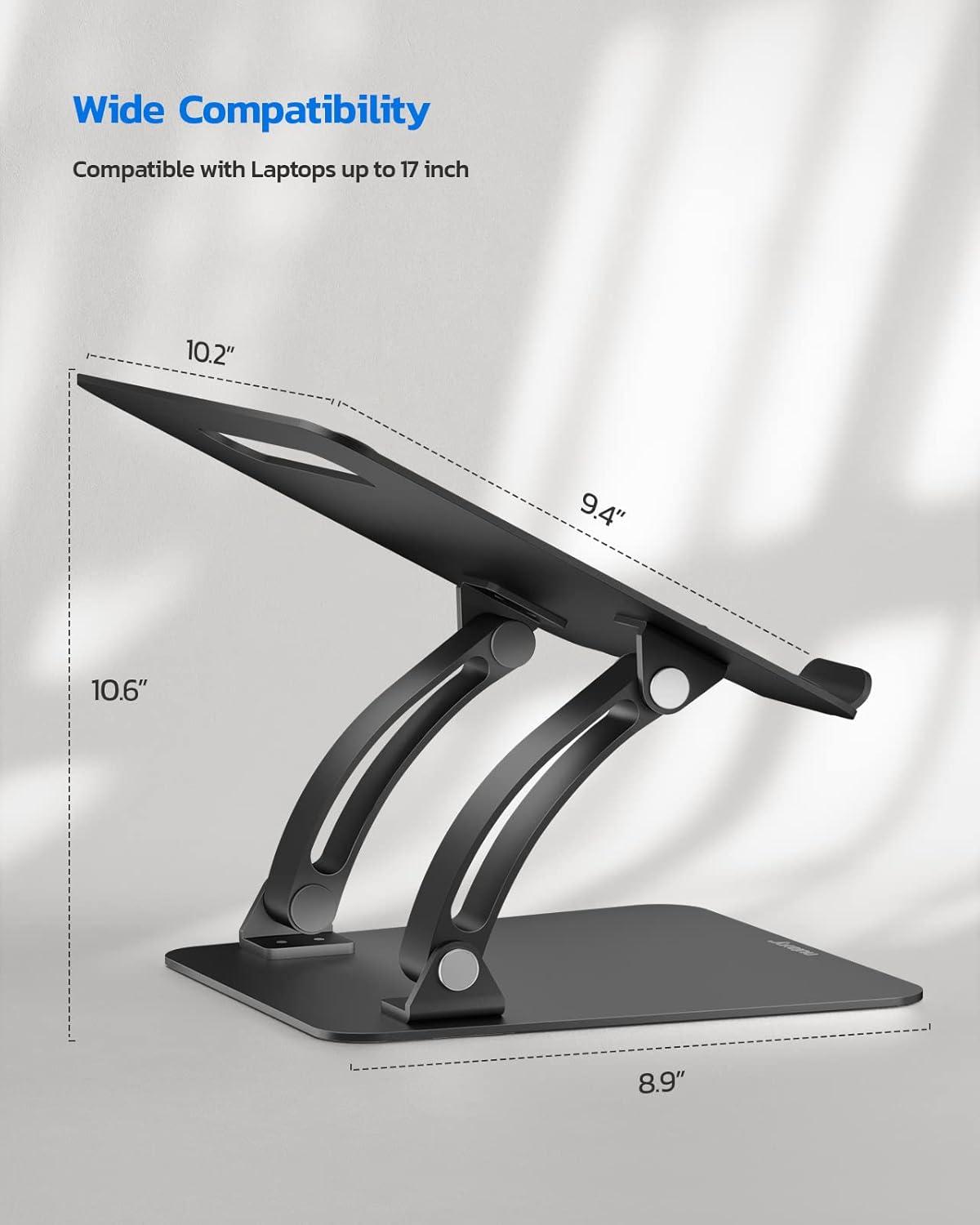 Nulaxy Fully Adjustable Laptop Stand for Desk, Dual Foldable Aluminum Computer Riser with Heat-Vent, Ergonomic Notebook Holder Portable Office Accessories Compatible with All 10-17″ Laptops, Silver(Black)