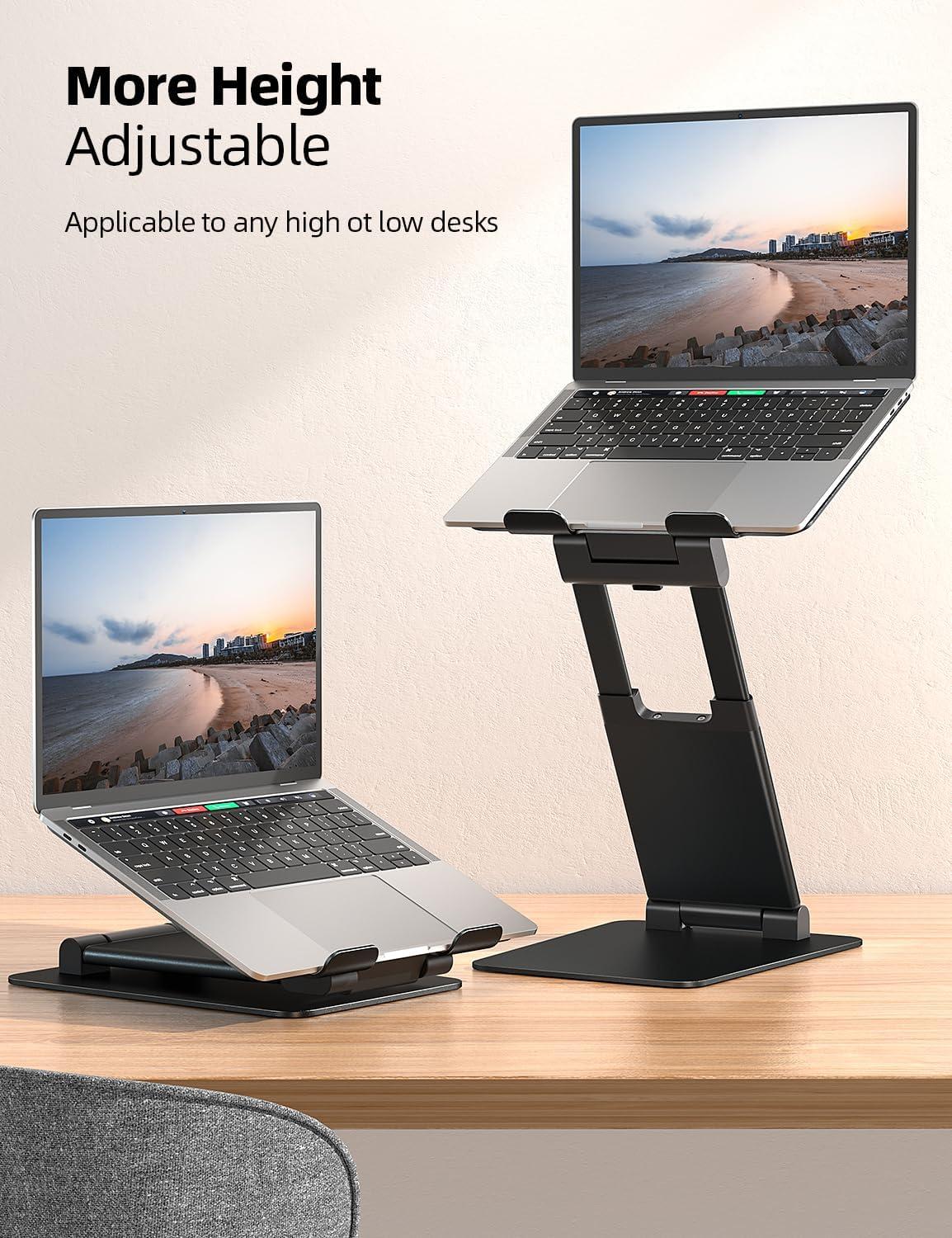 Nulaxy Height Adjustable Laptop Stand for Desk, Dual Foldable Aluminum Computer Riser, Pull Out Design Ergonomic Sit to Notebook Holder Convertor, Compatible with All 10-17″ Laptops, Tablets, Gray(B-Black)