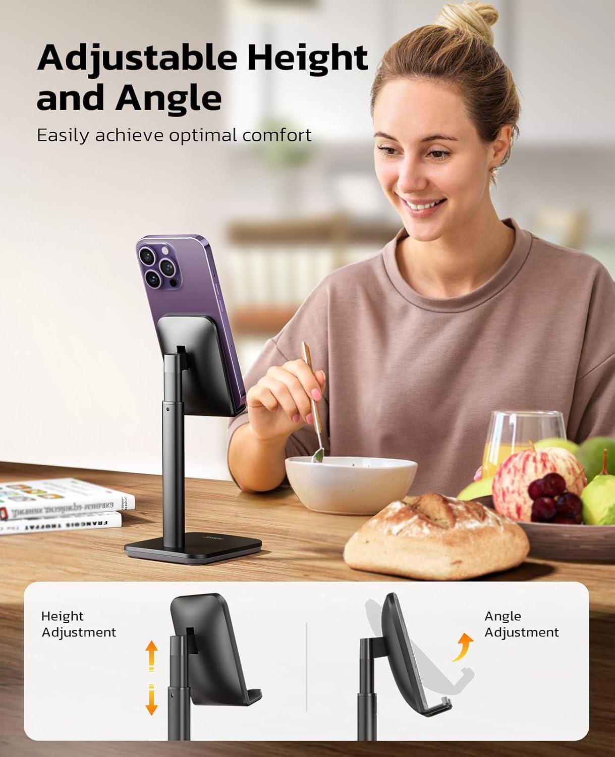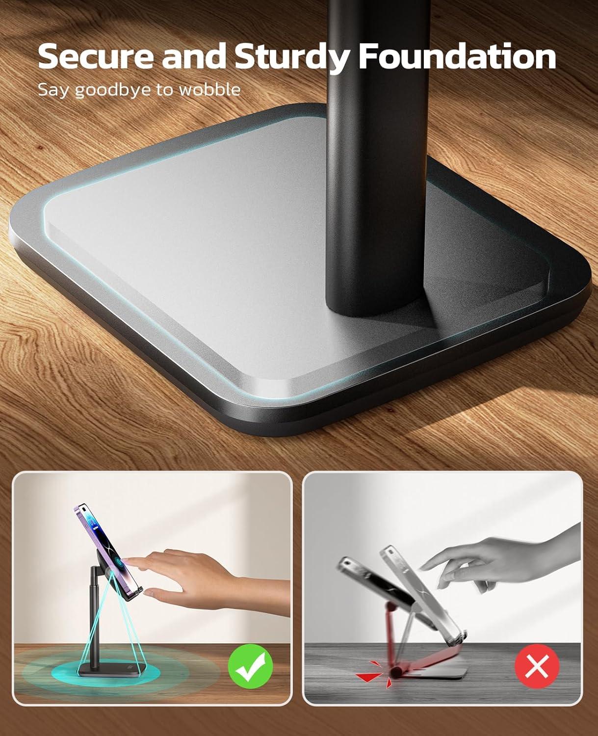 Nulaxy Phone Stand, Height Angle Adjustable Cell Phone Stand, Phone Holder for Desk Compatible with Phone 16 15 14 13 12 Mini 11 Pro Xs Max Xr X 8 7 6 6s Plus, All Smartphones (4-8 inches) – Black