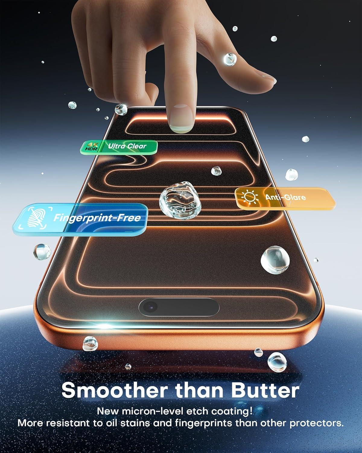 OMOTON 2+2 Pack Matte Screen Protector for iPhone 17 Pro 6.3 Inch 2025, Matte Layer Film with Camera Lens Protector, Tempered Glass with Easy Installation Tool, Anti-glare, Smooth Touch, Feel as Silk(iPhone 17 Pro Max)