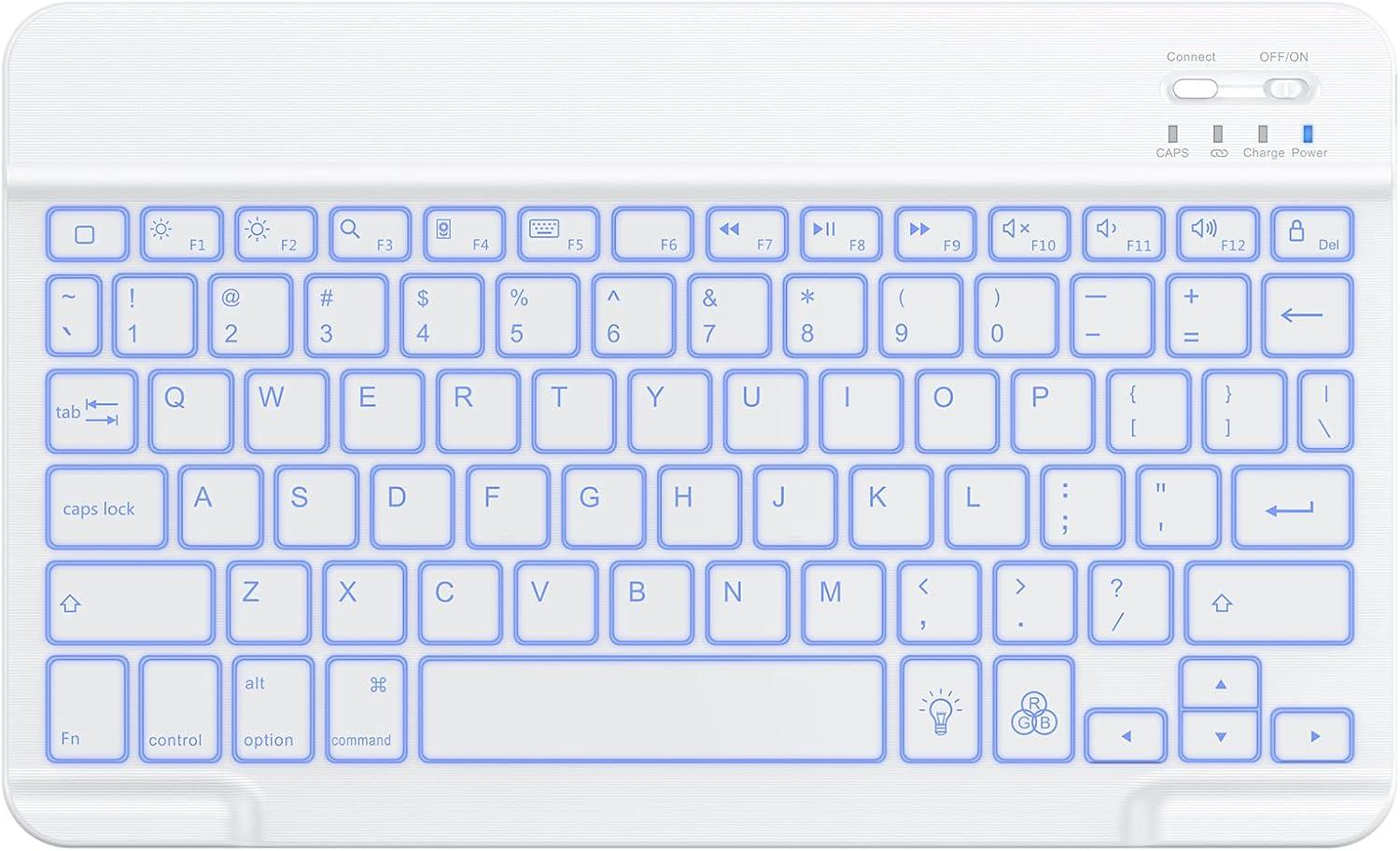 OMOTON Bluetooth Keyboard, Backlight Wireless Rechargeable Keyboard for iPad, iPad Pro, iPad mini, iPad Air with Illuminated LED (White)(White)