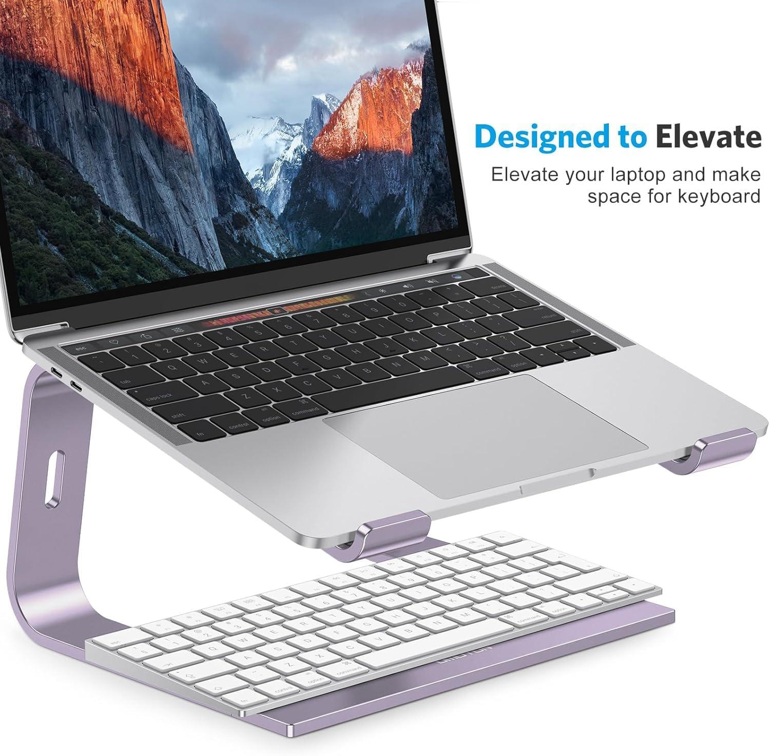 OMOTON Laptop Stand, Detachable Laptop Mount, Aluminum Laptop Holder Stand for Desk, Compatible with MacBook Air/Pro, Dell, HP, Lenovo and All Laptops (11-16 inch), Silver(Purple)