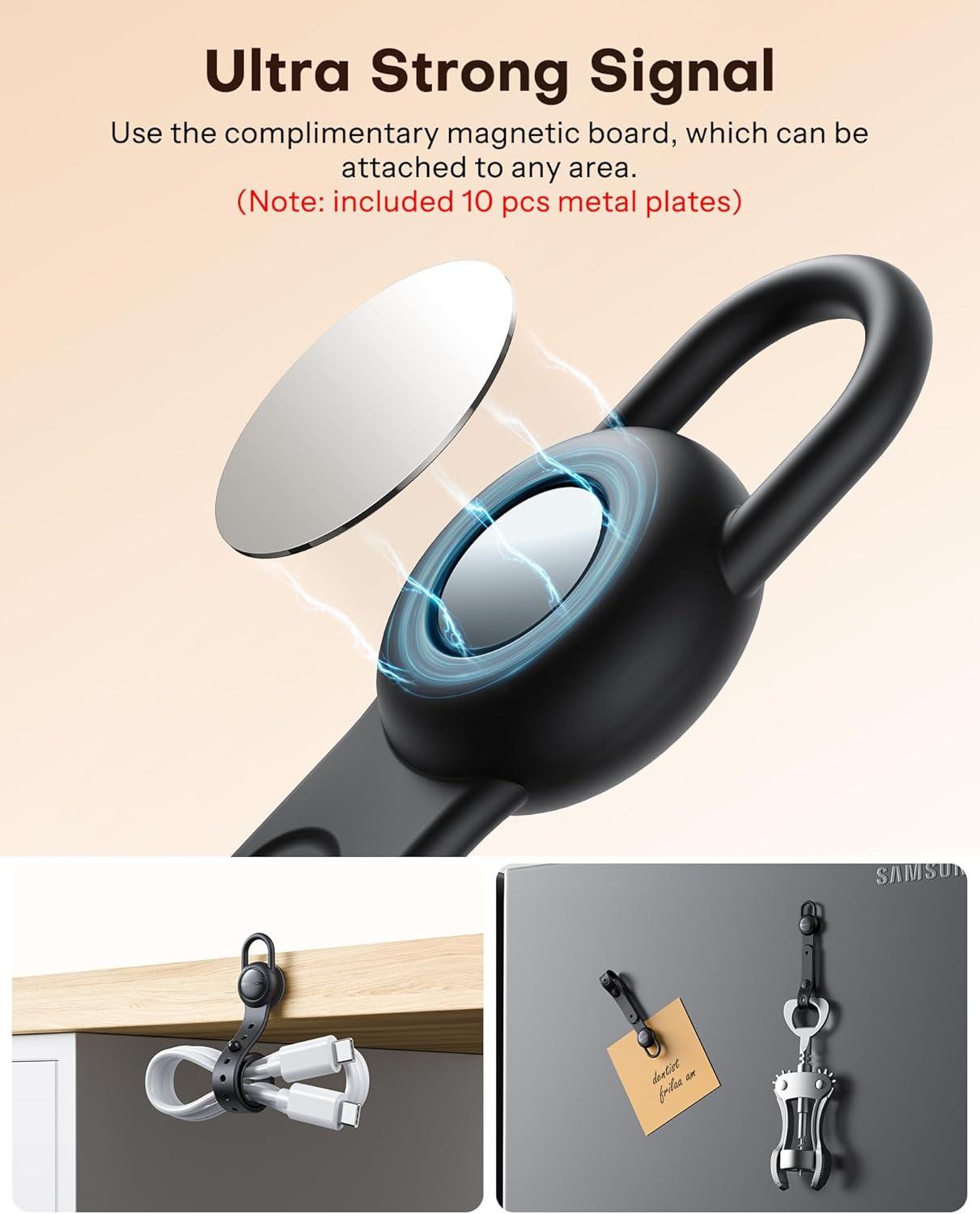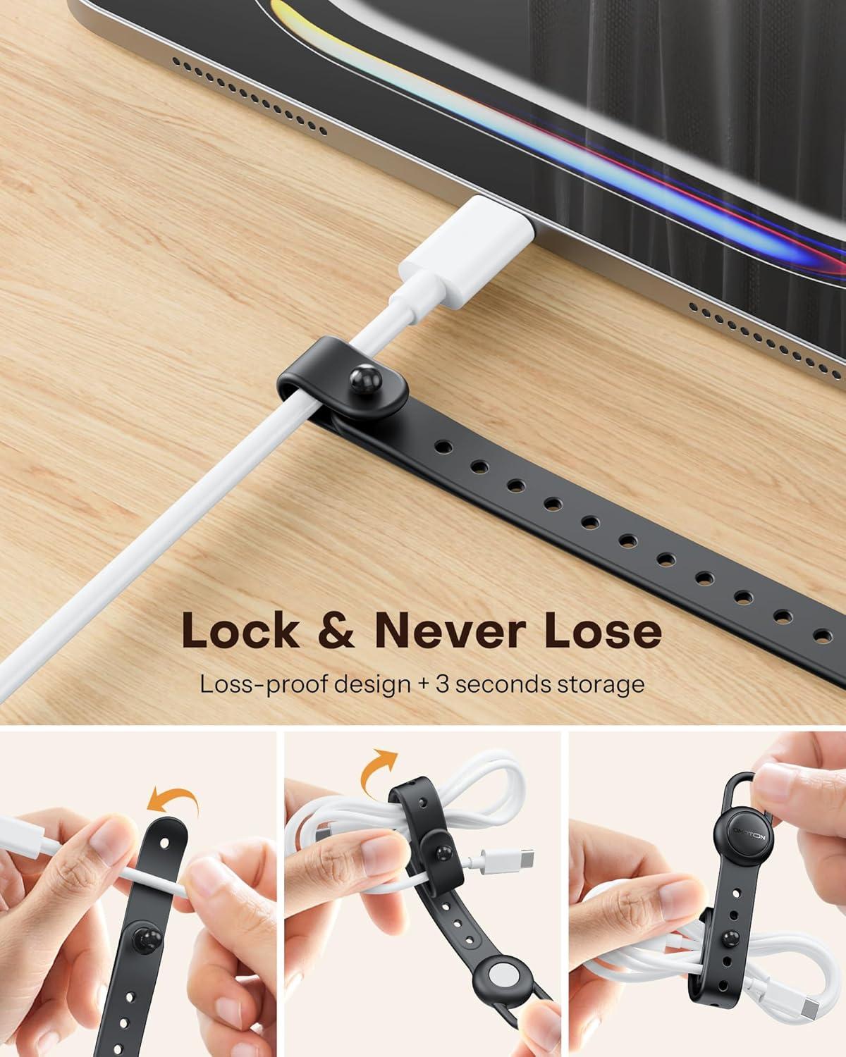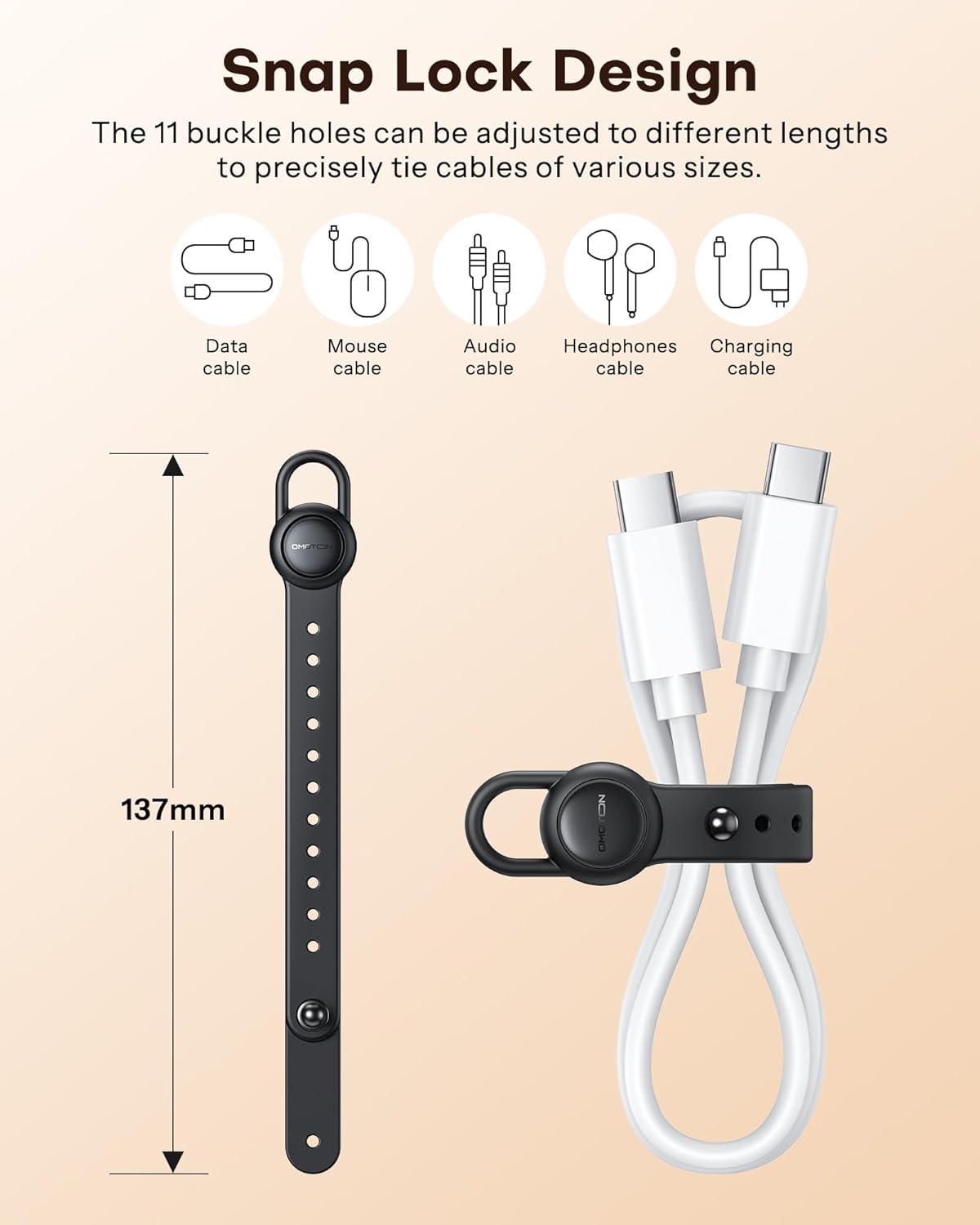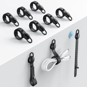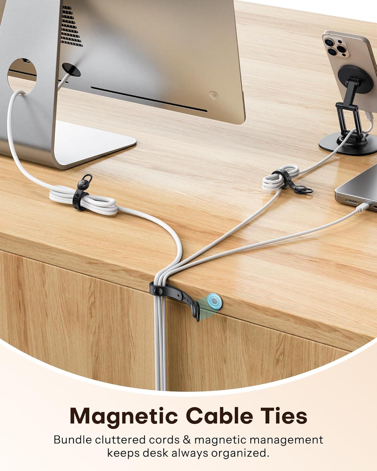 OMOTON Magnetic Cable Ties, 10 Pcs Reusable Silicone Wire Organizer Straps Adjustable Cord Clips for Phone Laptop Charging Cable USB Wired Earphone, Black