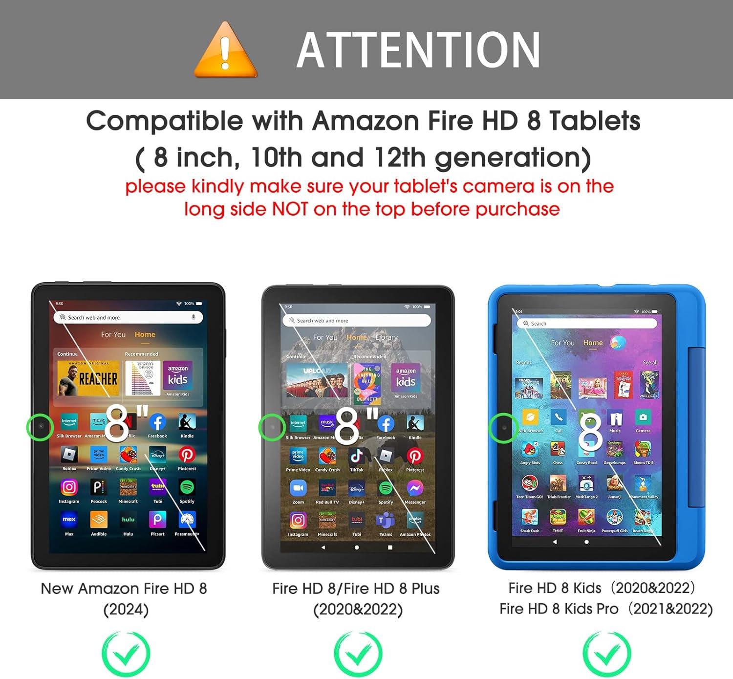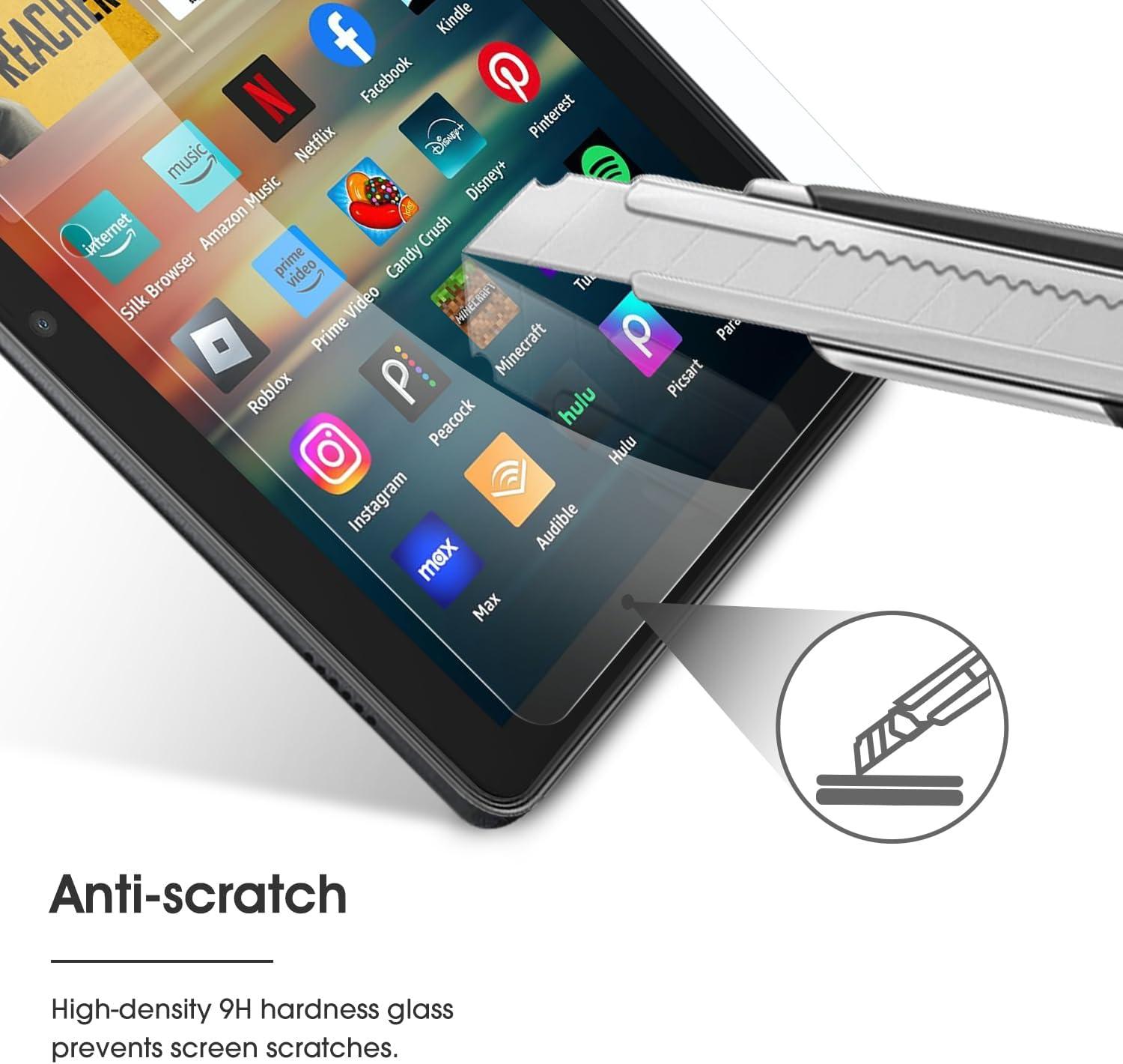 OMOTON Screen Protector for New Amazon Kindle Fire HD 8/8 Plus/Kids/Kids Pro Tablet(2024/2022/2020, 12th/10th Generation, 8 inch), Tempered Glass/9H Hardness/Case Friendly, 2 Pack