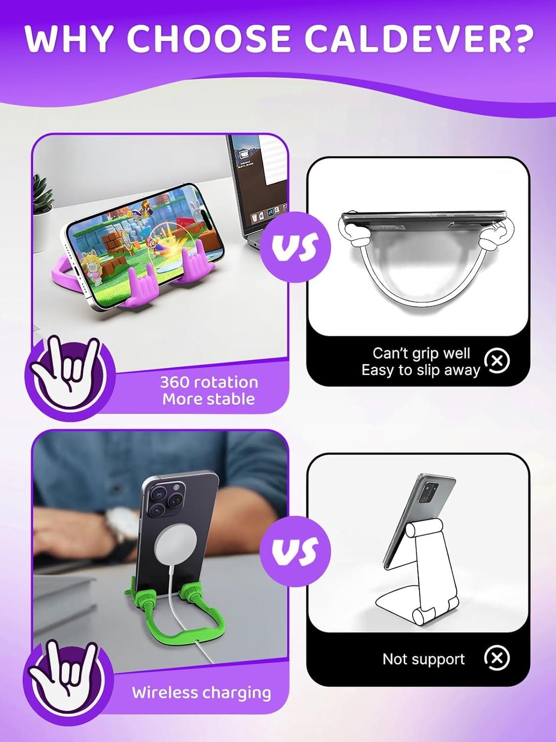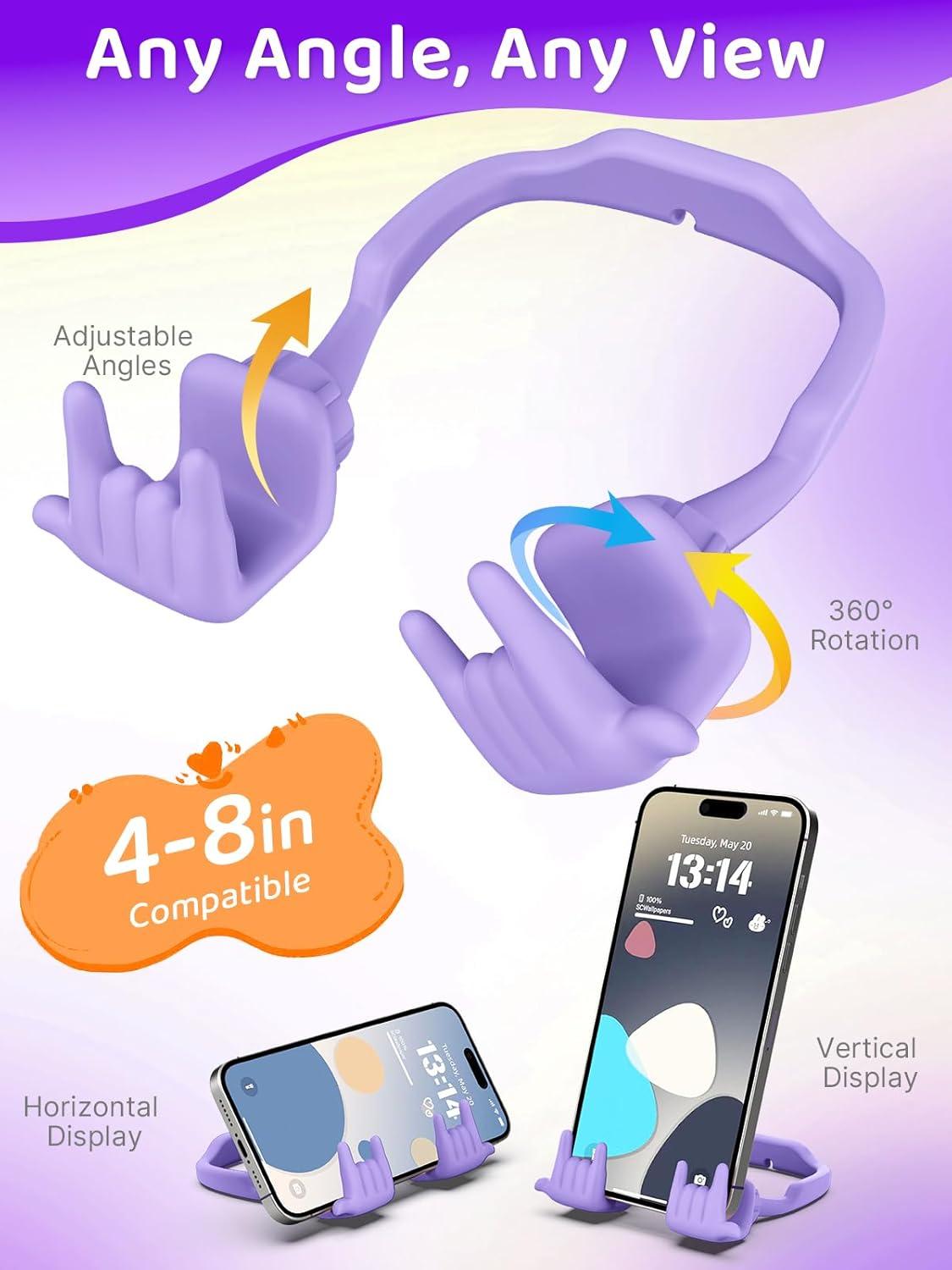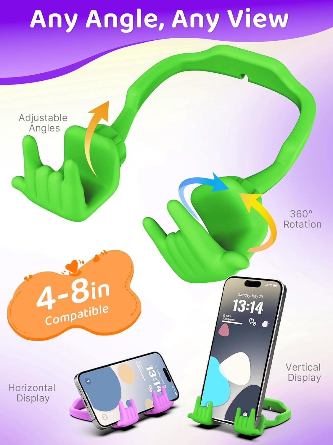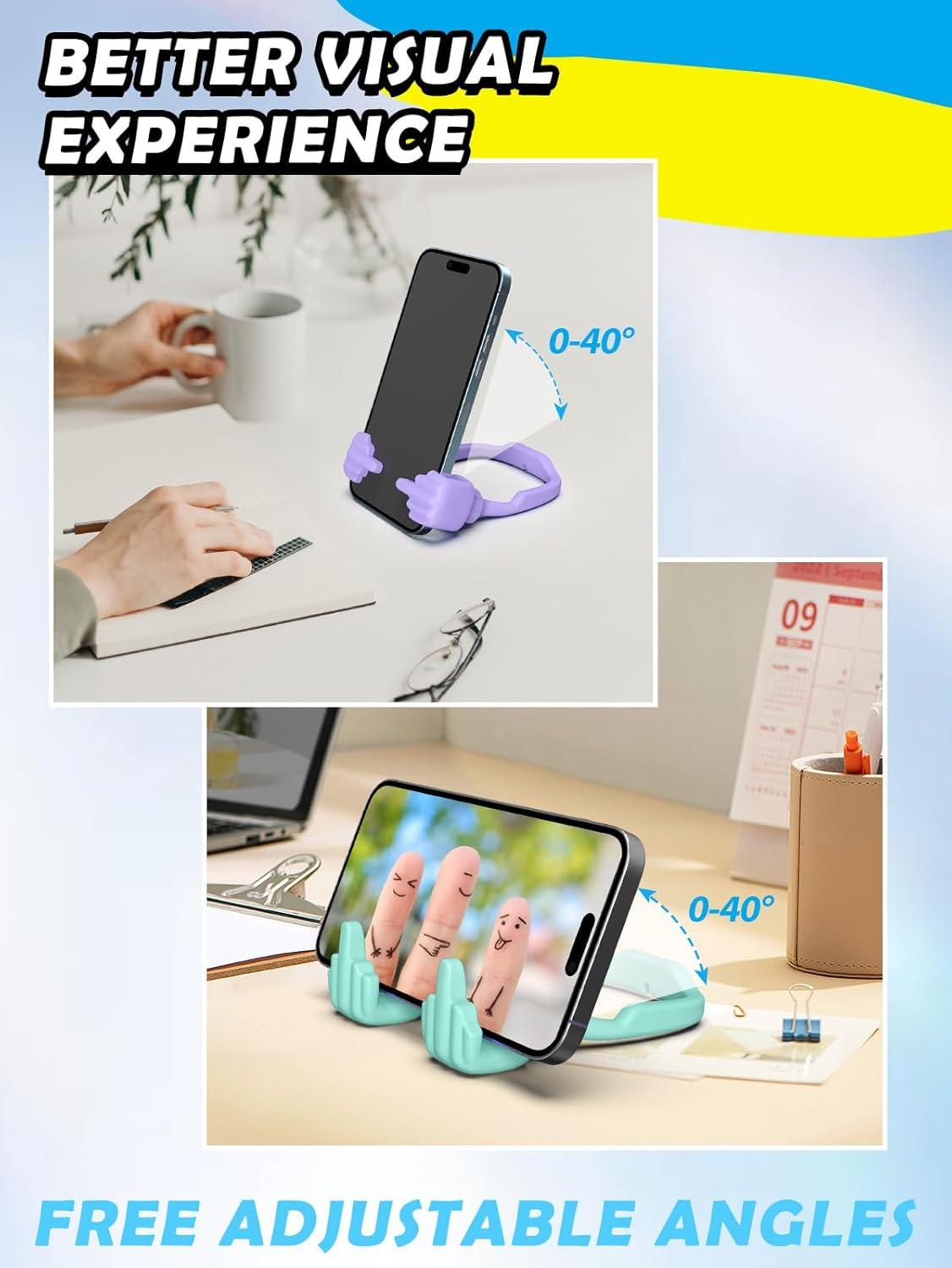Stocking Stuffers for Teens Girls Gifts for Women Adults Christmas: Lazy Cell Phone Stand Unique Gesture Phone Holder for Desk Gift for Boys Men Cool Gadget Useful Funny White Elephant Gag Gifts(Purple&Green)