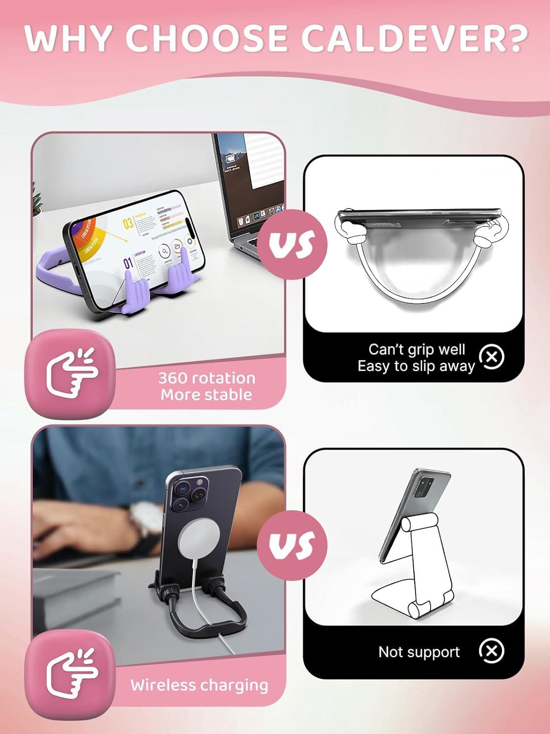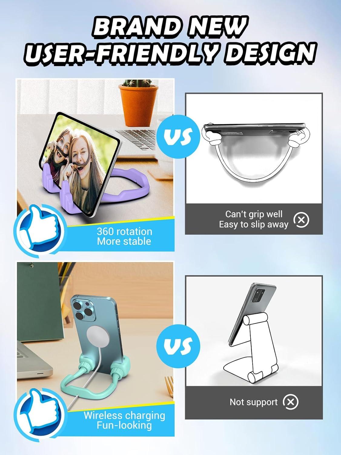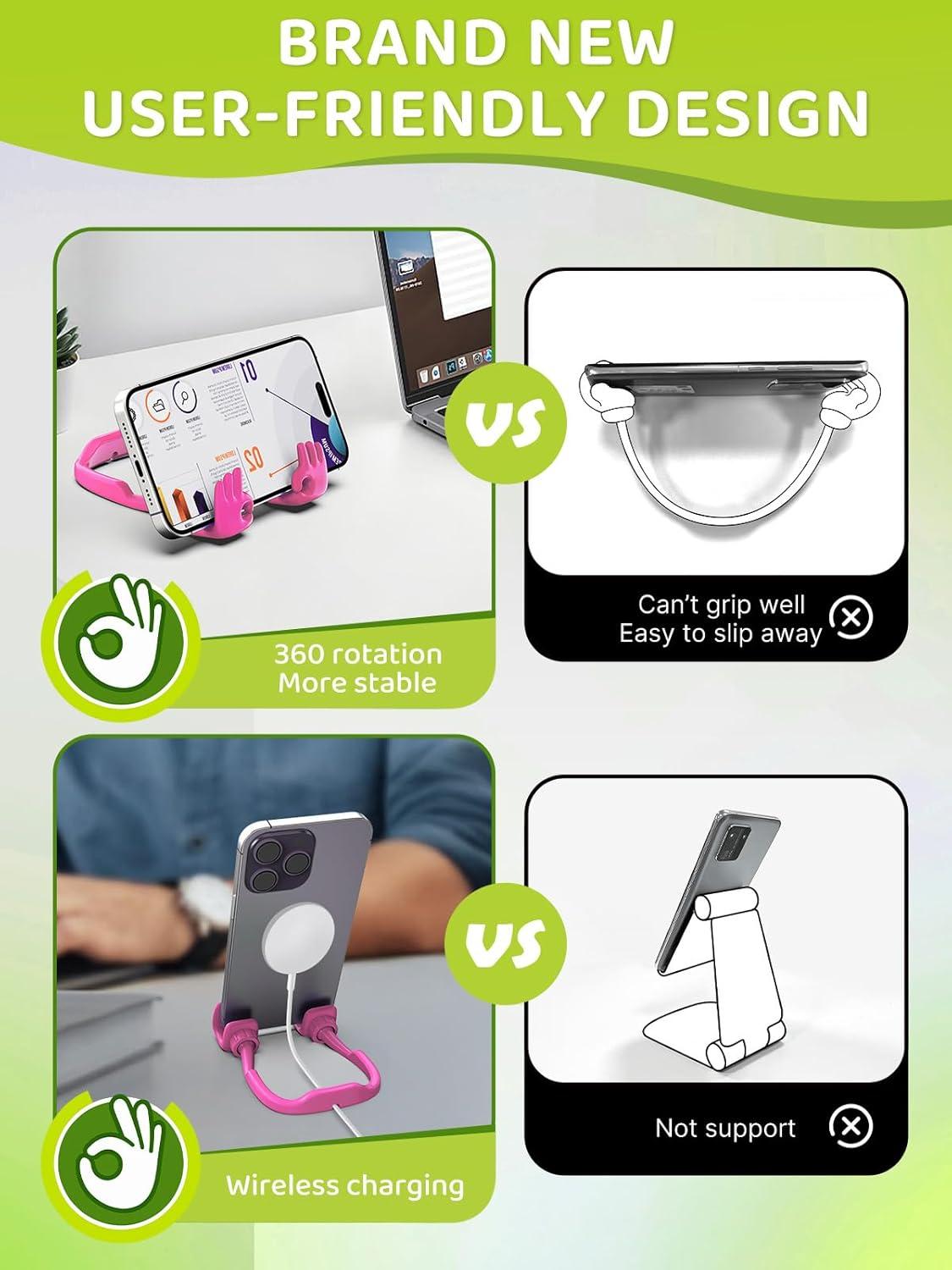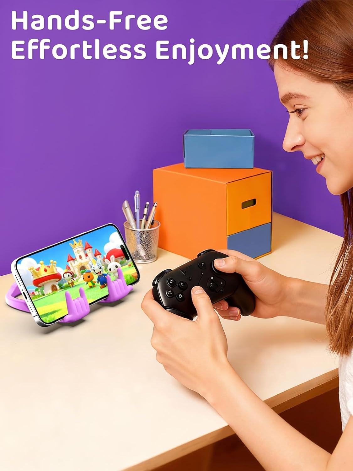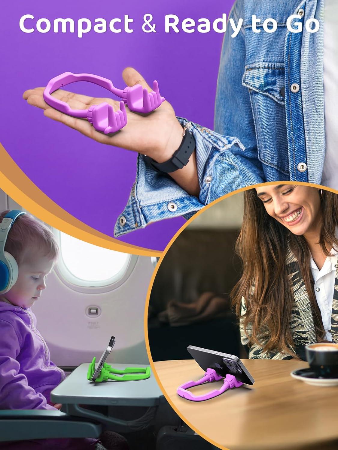 Stocking Stuffers for Teens Girls Gifts for Women Adults Christmas: Lazy Cell Phone Stand Unique Gesture Phone Holder for Desk Gift for Boys Men Cool Gadget Useful Funny White Elephant Gag Gifts(Purple&Green)
