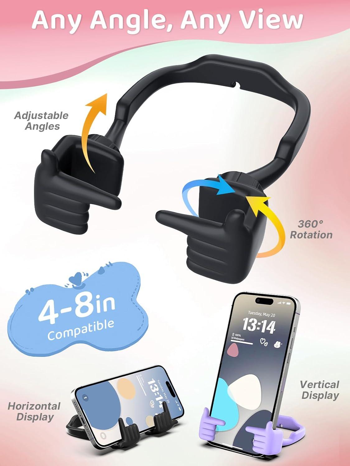 Stocking Stuffers for Teens Girls Boys Cell Phone Stand: 2 Pack Adjustable Shy Fingers Lazy Phone Holder for Desk Fun Gifts Ideas for Adults Wife Women Gifts for Christmas (Purple&Pink)(Black+Purple)