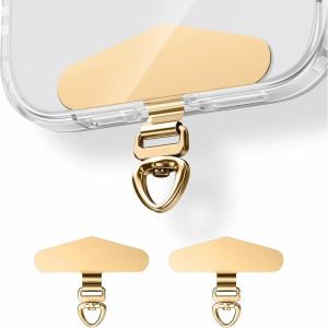 Heavy Duty Phone Tether Tab 360, Metal Lanyard Patch with 44lbs Load Capacity & Swivel Ring,2-Pack(Champagne Gold*2)