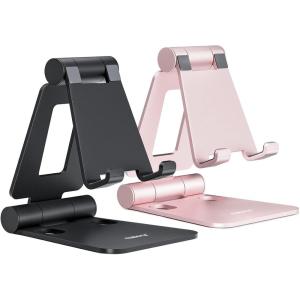 Nulaxy 2 Pack Dual Folding Cell Phone Stand, Fully Adjustable Foldable Desktop Phone Holder Cradle Dock Compatible with iPhone 17 16 15 14 13 12 11 Pro Max Xs Xr X 8, All Phones, Black & Silver(B-Black & Rose Gold)