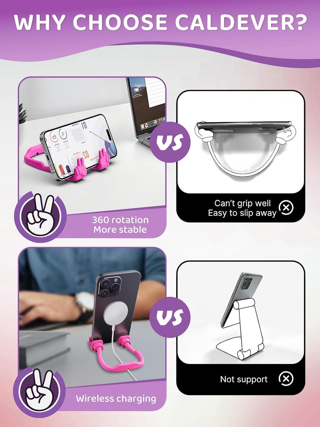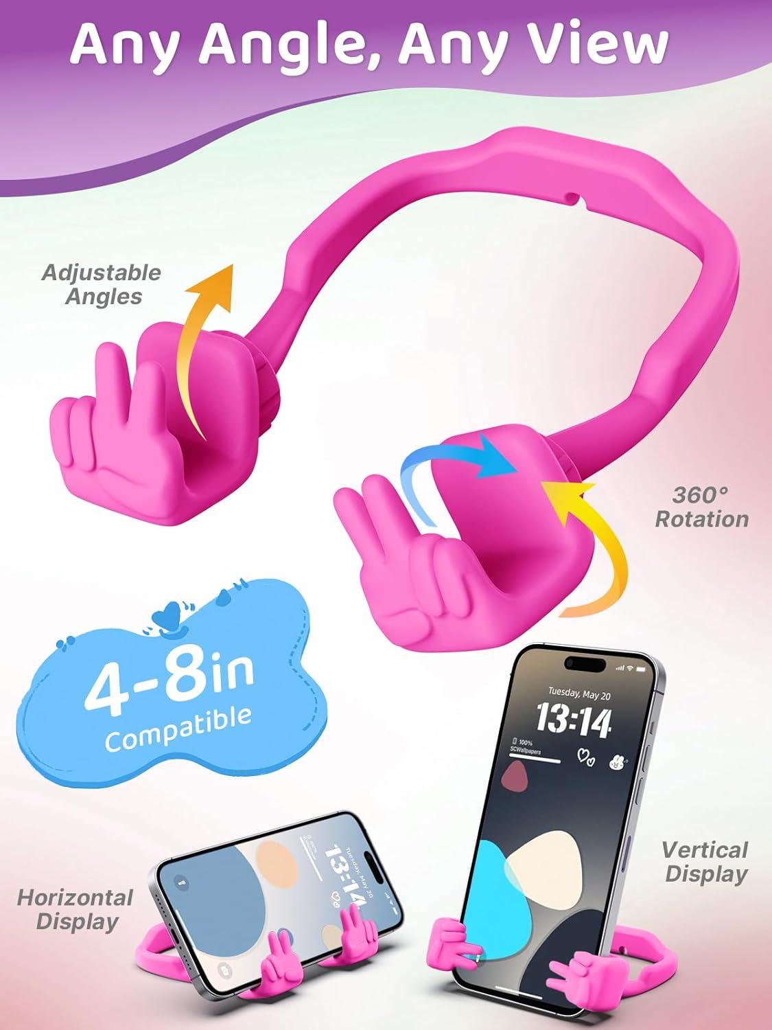 Cell Phone Stand Stocking Stuffers for Teens Boys Girls Kids Gifts: Upgrade Adjustable Peace Sign Thumbs Lazy Cell Phone Holder for Desk Cool Gadgets Birthday Gifts for Women Men Teenage Adults Wife(Hot Pink)