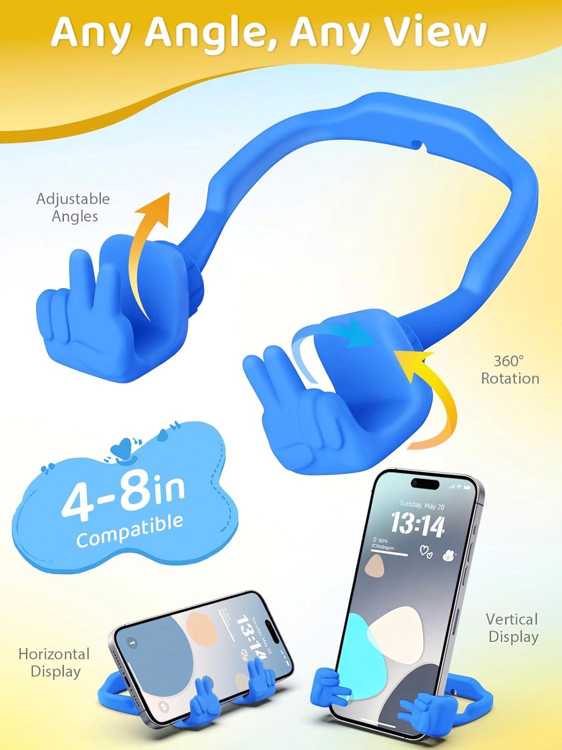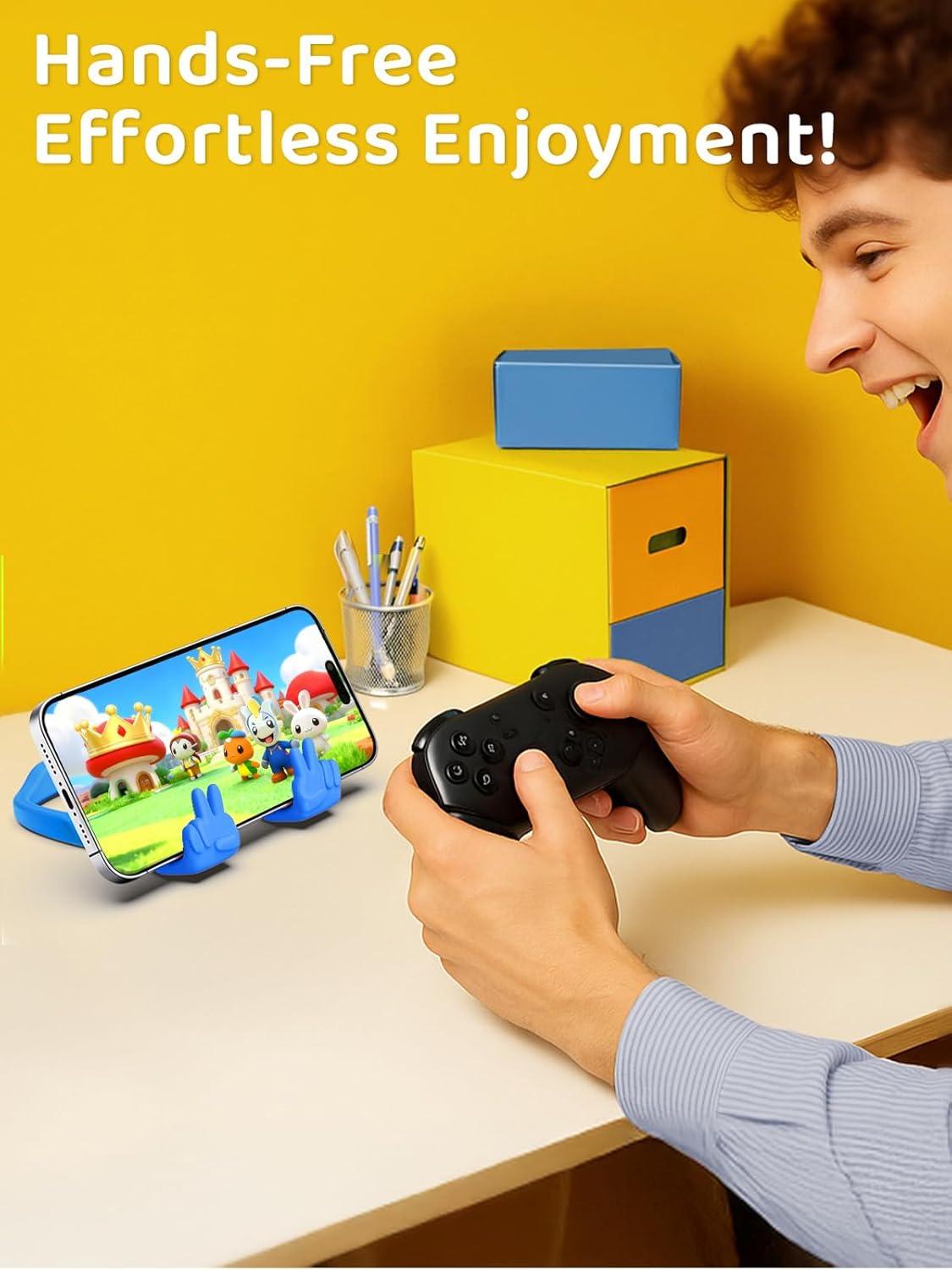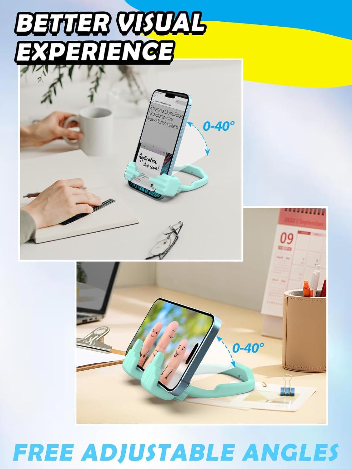 Cell Phone Stand Stocking Stuffers for Teens Boys Girls Kids Gifts: Upgrade Adjustable Peace Sign Thumbs Lazy Cell Phone Holder for Desk Cool Gadgets Birthday Gifts for Women Men Teenage Adults Wife(Blue)