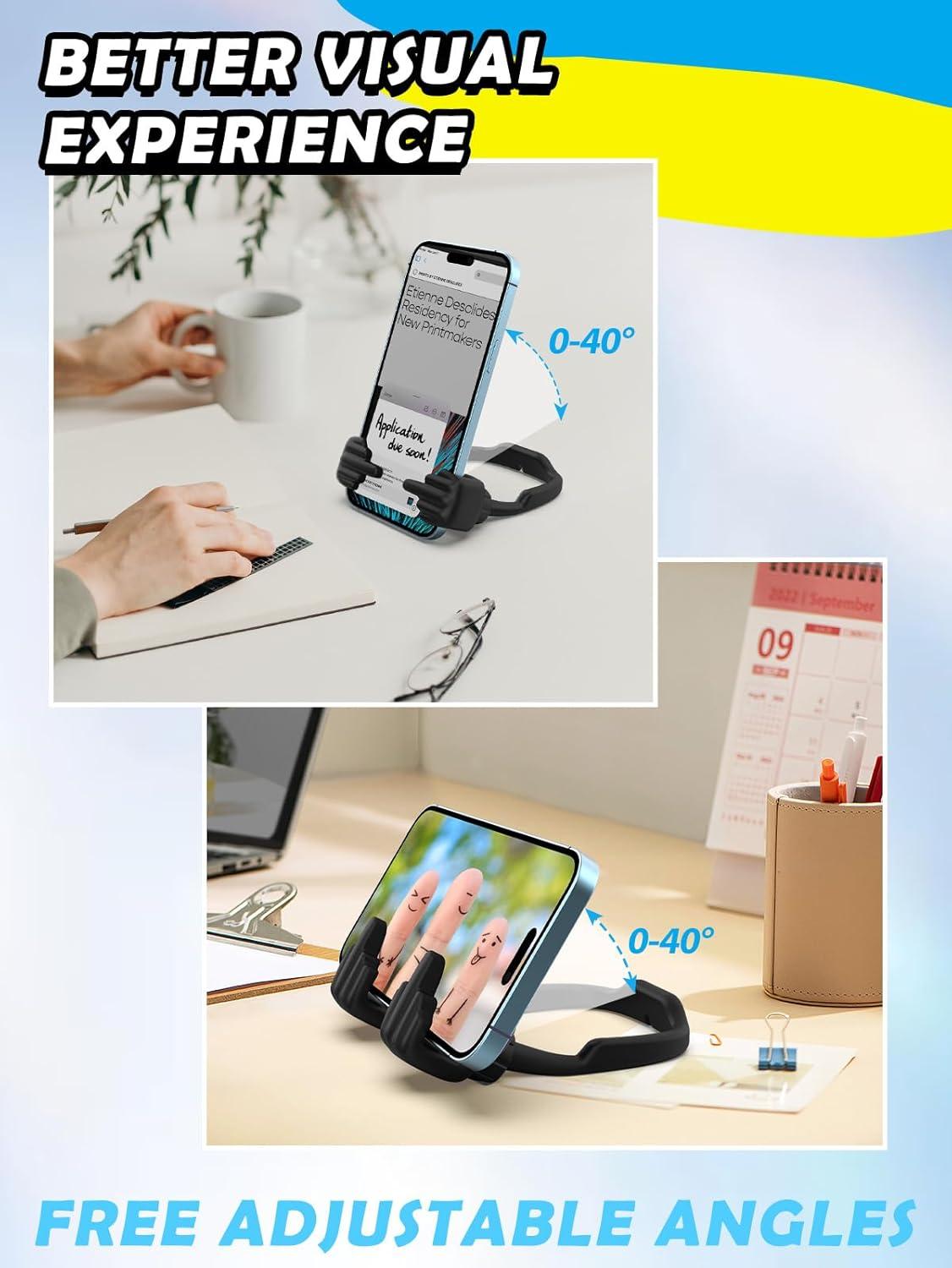 Cell Phone Stand Stocking Stuffers for Teens Boys Girls Kids Gifts: Upgrade Adjustable Peace Sign Thumbs Lazy Cell Phone Holder for Desk Cool Gadgets Birthday Gifts for Women Men Teenage Adults Wife(Black)