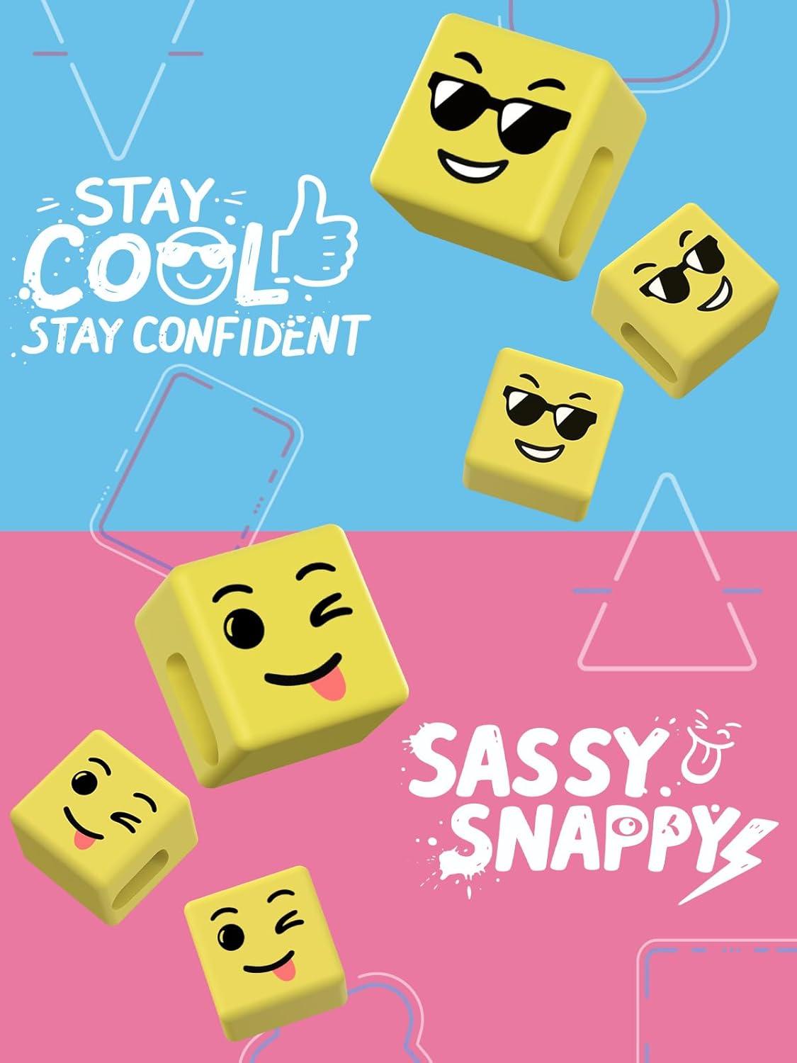 Dual-Sided Mood Cubes Phone Holder Clip for CALDEVER Gesture Series Phone Stand Accessory for Desk Stocking Stuffers for Teens Girls Boys Adults Emotional Cell Phone Holder Gifts for Women Men Kids(Blue & Yellow)