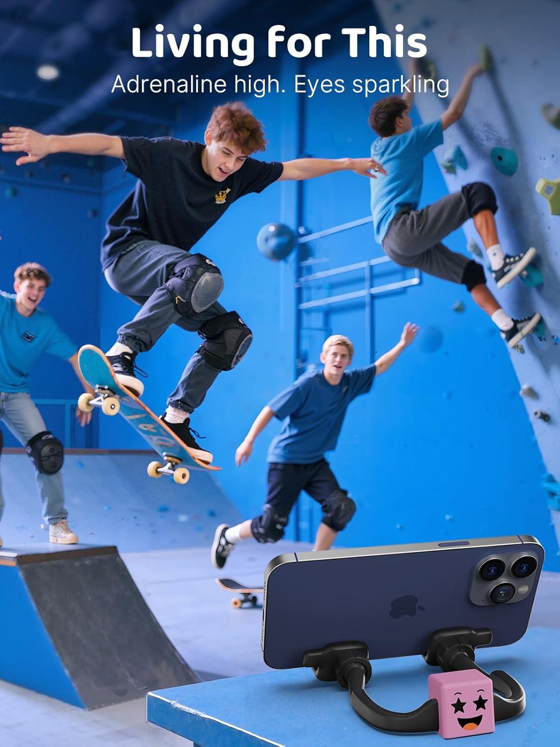 Stocking Stuffers for Teen Boys Girls Gifts Cell Phone Stand Upgrade Adjustable Rock on Lazy Phone Stand for Desk Cool Funny Gadget Gifts for Christmas Adult Men Women Wife 1Pack Blue(Black)