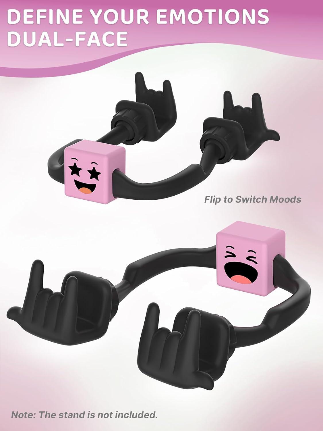 Dual-Sided Mood Cubes Phone Holder Clip for CALDEVER Gesture Series Phone Stand Accessory for Desk Stocking Stuffers for Teens Girls Boys Adults Emotional Cell Phone Holder Gifts for Women Men Kids(Pink&Blue)