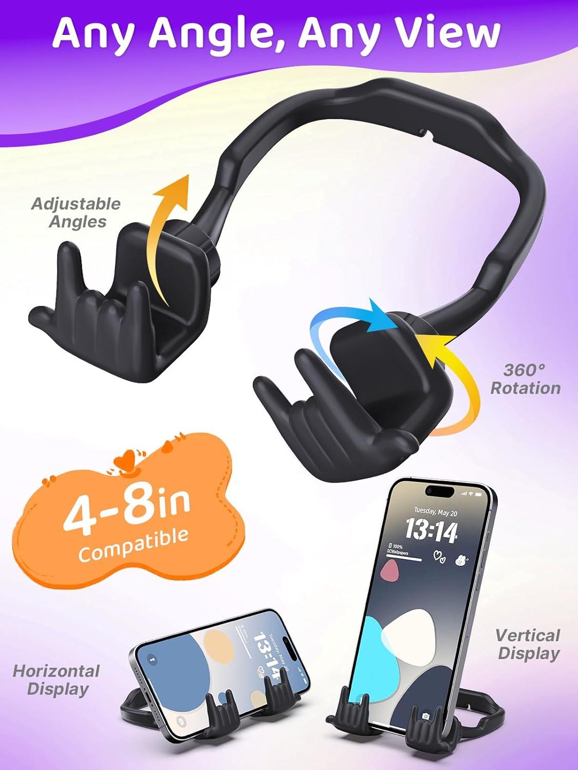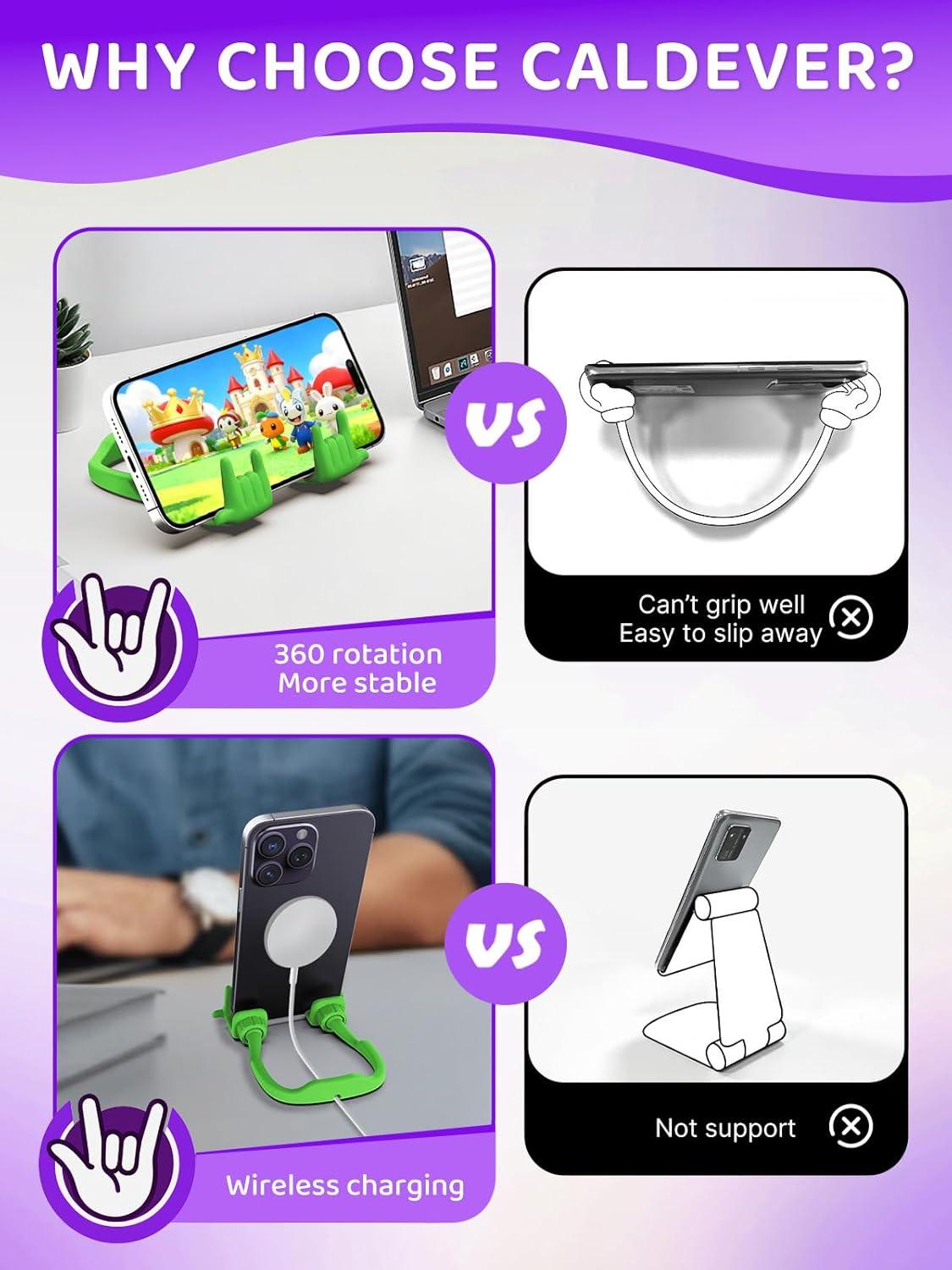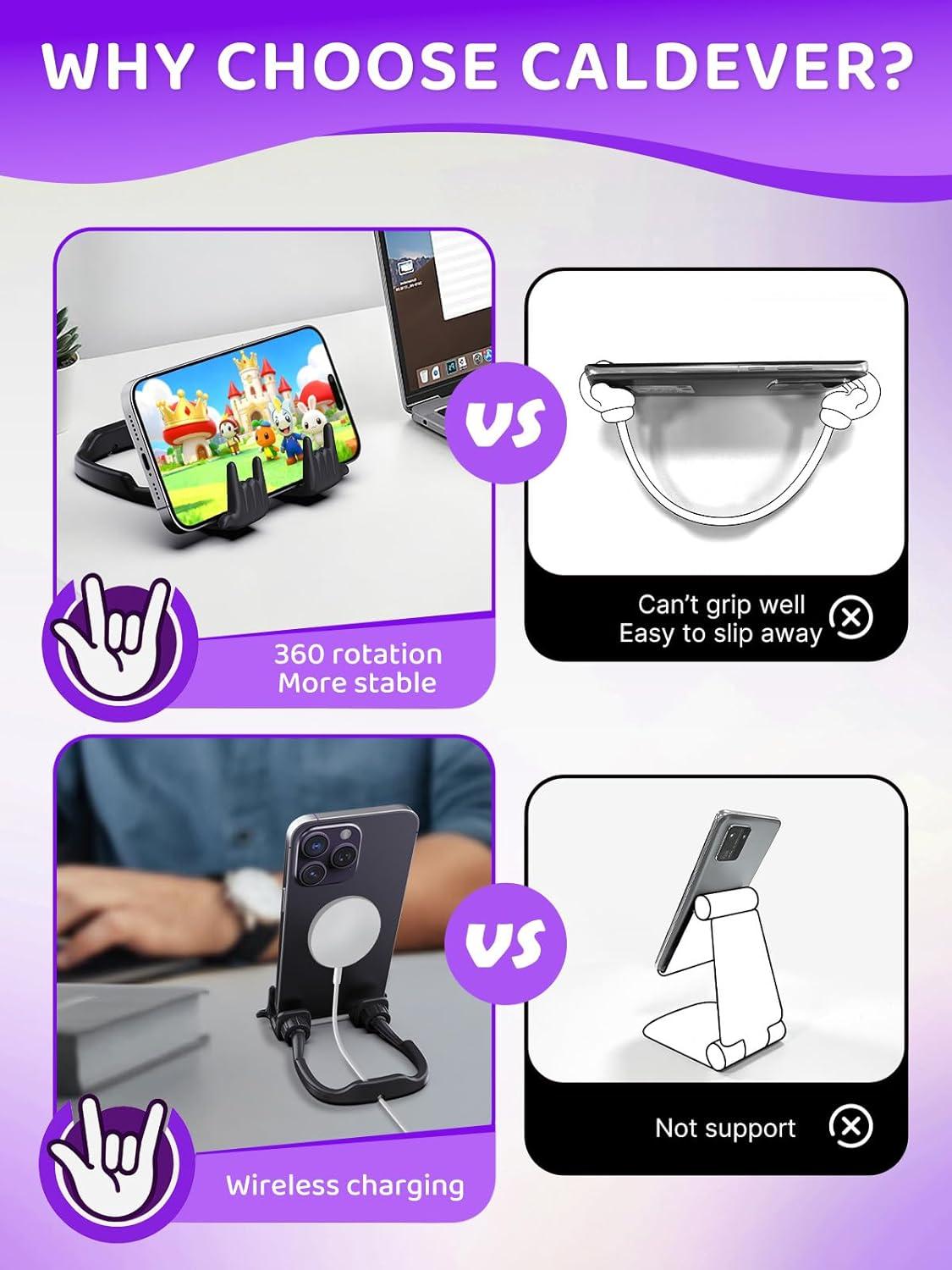 Cell Phone Stand Stocking Stuffers for Teens Boys Girls Kids Gifts: Upgrade Adjustable Peace Sign Thumbs Lazy Cell Phone Holder for Desk Cool Gadgets Birthday Gifts for Women Men Teenage Adults Wife(Purple)