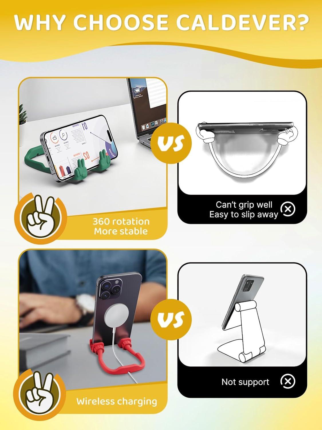 Christmas Stocking Stuffers for Teens Boys Men Adults Gifts: Cell Phone Holder for Desk Funny Gag Gift Unique Gesture Phone Stand Birthday Gifts for Teenager Girls Women White Elephant Cool Stuff(Black&Yellow&Green)