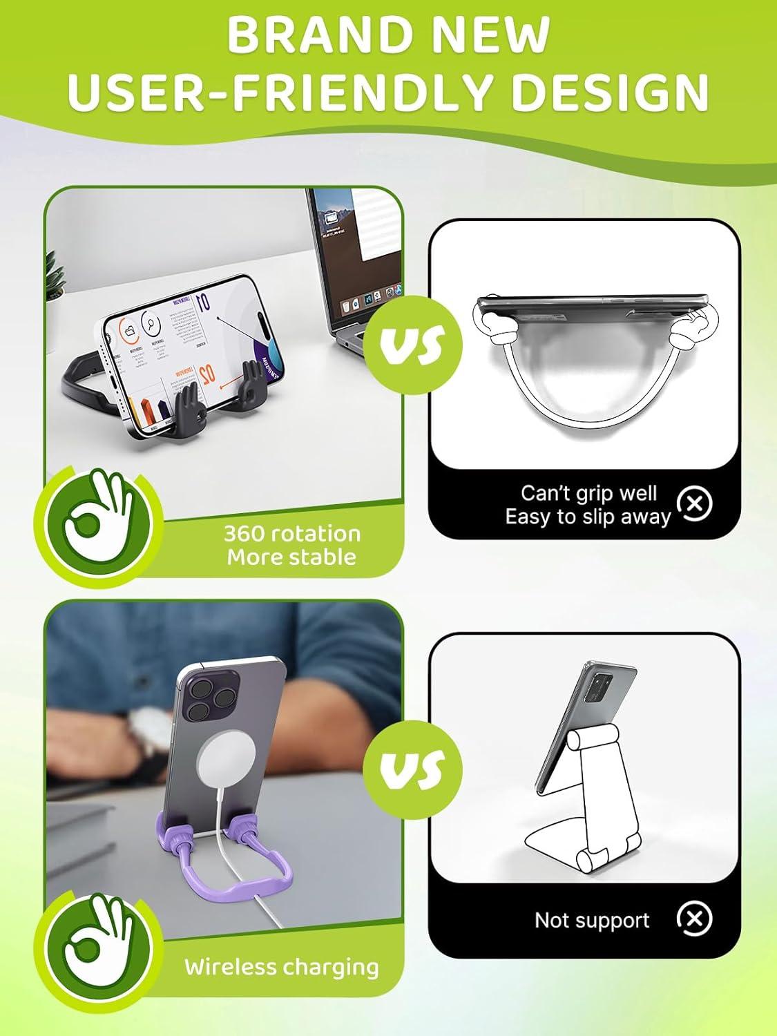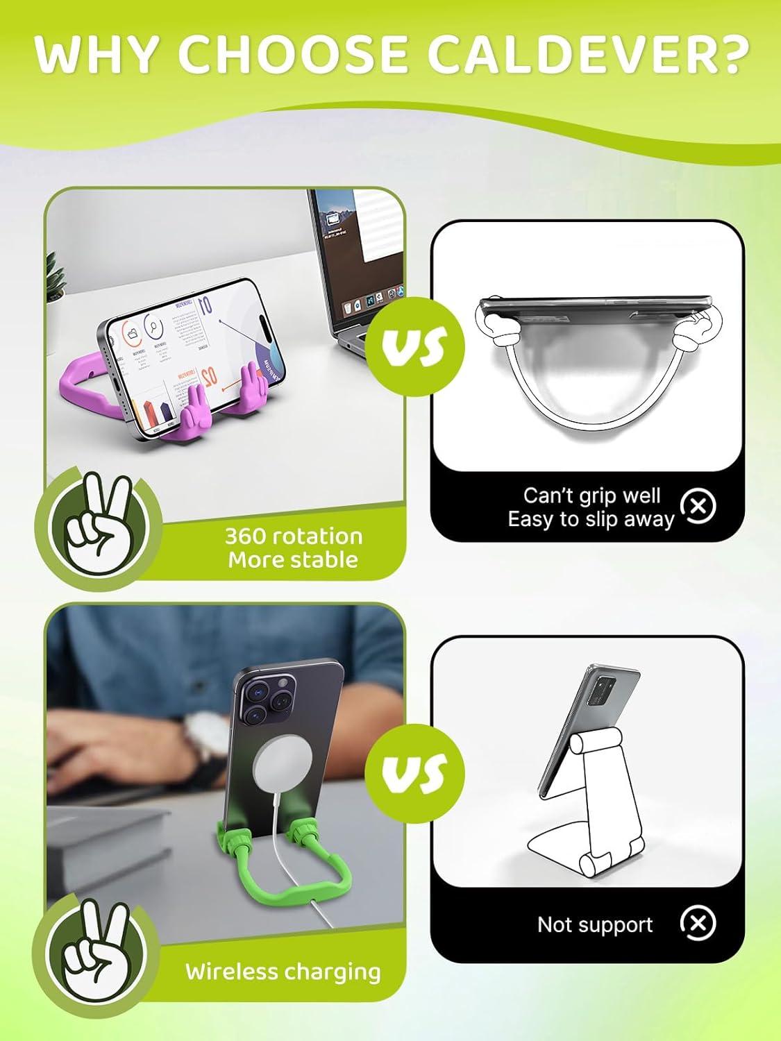 Stocking Stuffers for Teens Girls Gifts for Women Adults Christmas: Lazy Cell Phone Stand Unique Gesture Phone Holder for Desk Gift for Boys Men Cool Gadget Useful Funny White Elephant Gag Gifts(Purple&Green)