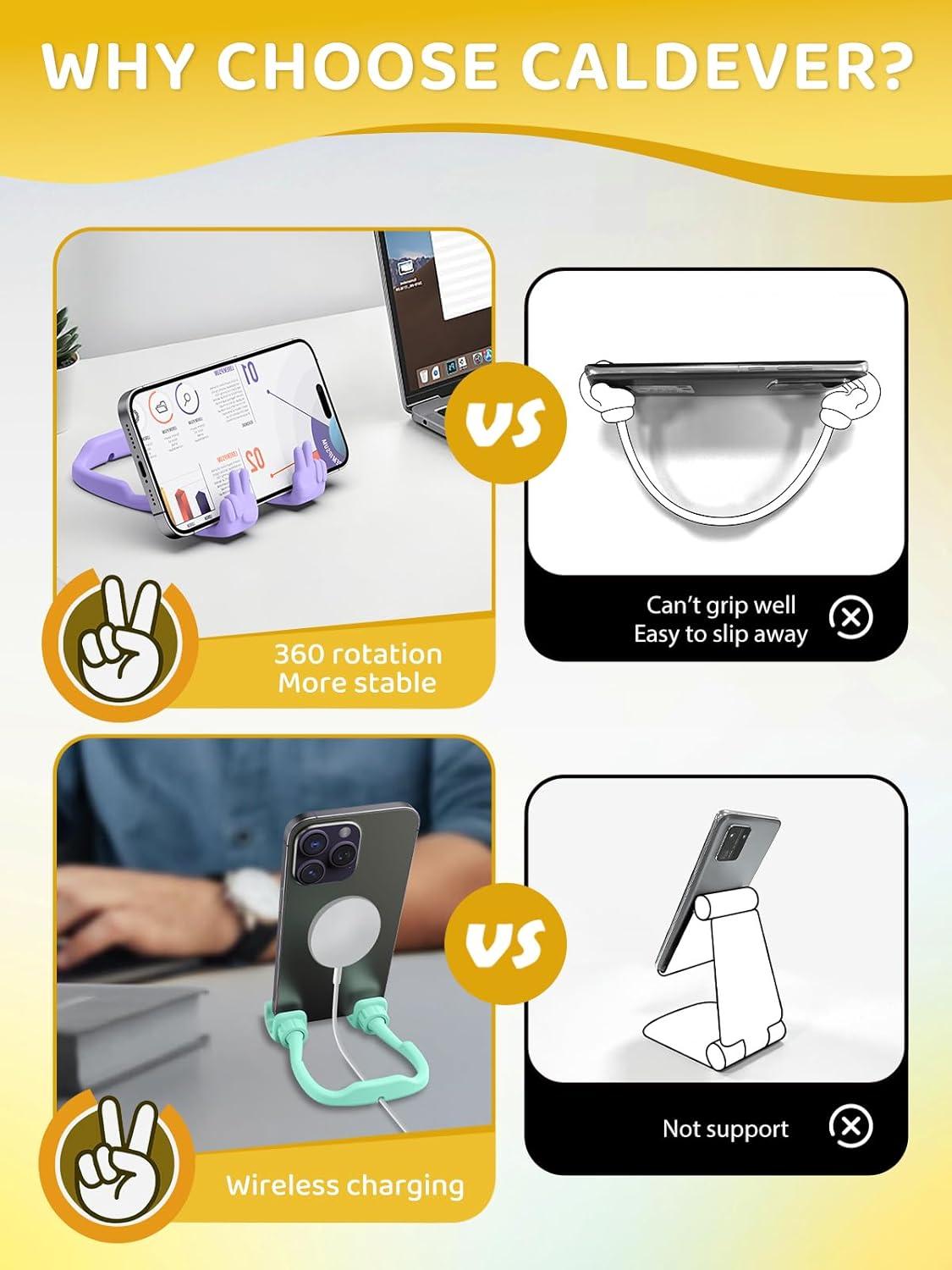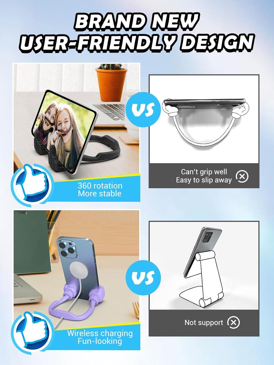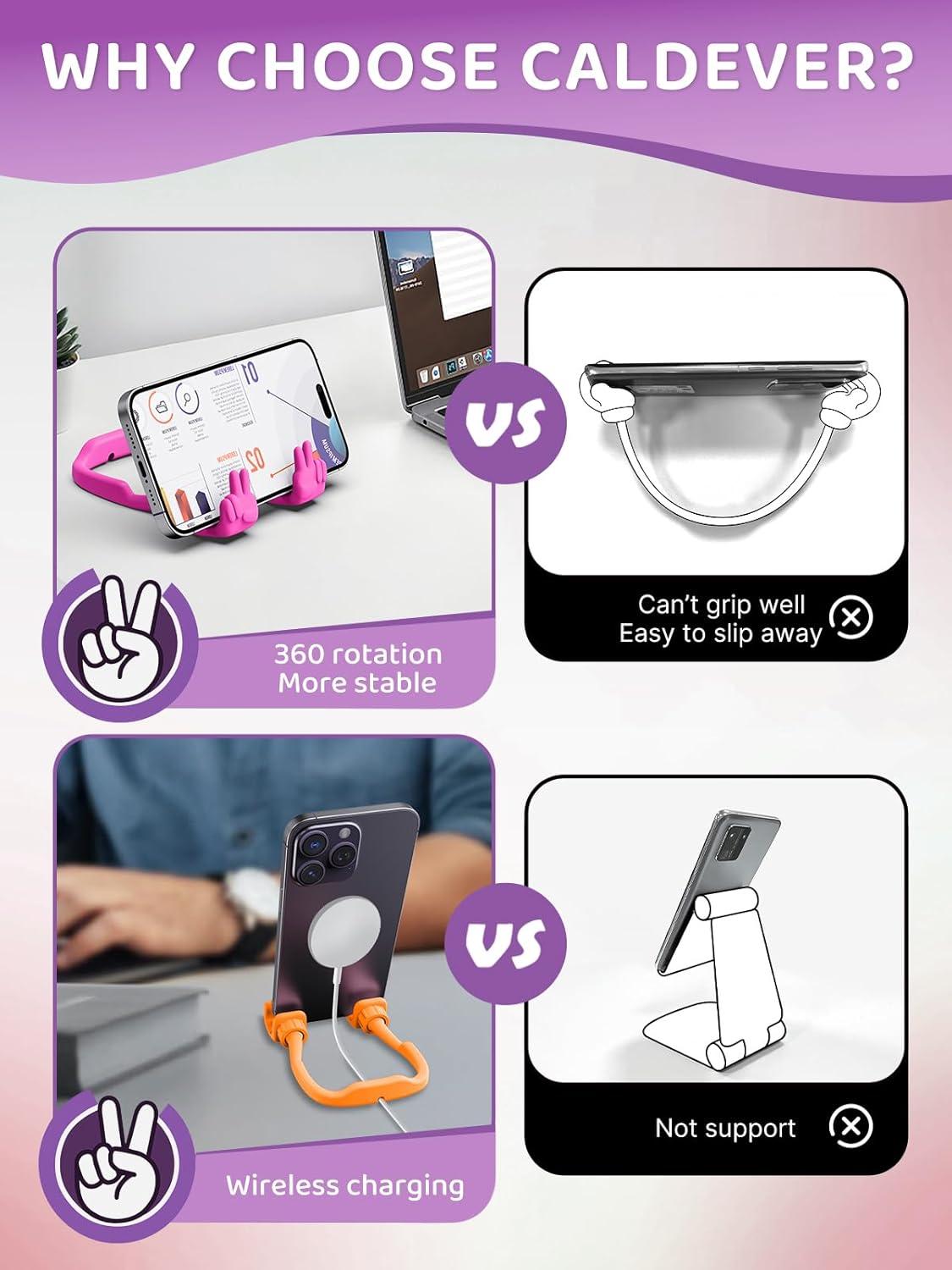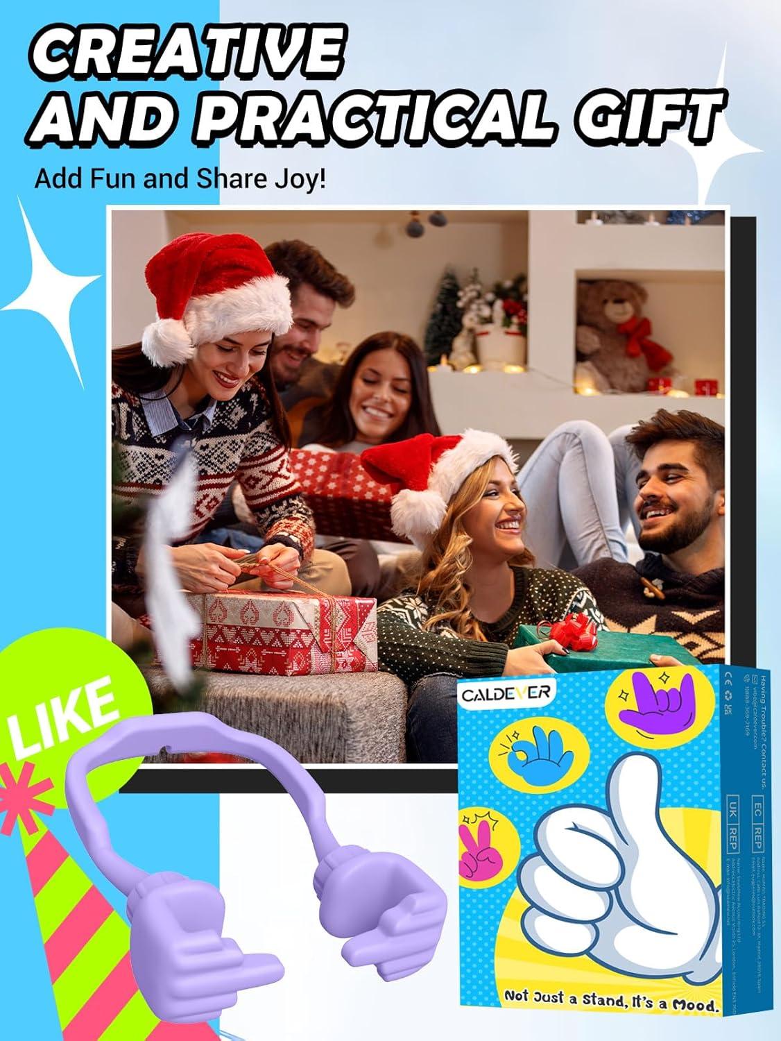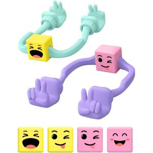 Stocking Stuffers for Teens Girls Gifts for Women Adults Christmas: Lazy Cell Phone Stand Unique Gesture Phone Holder for Desk Gift for Boys Men Cool Gadget Useful Funny White Elephant Gag Gifts(Purple&Green+Blue&Brown)
