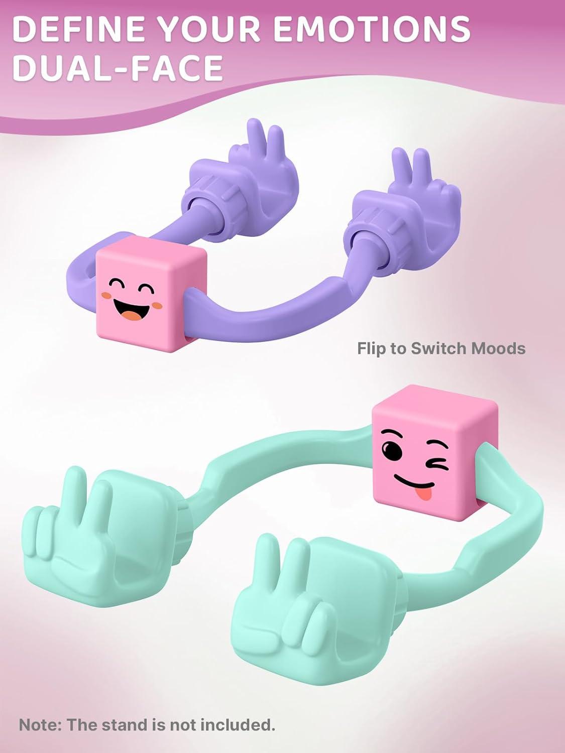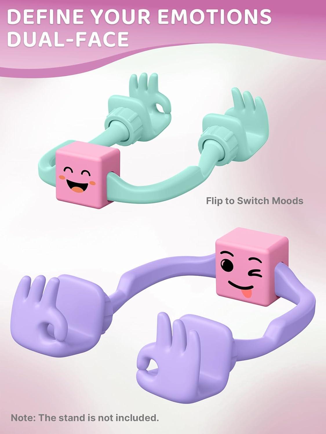 Dual-Sided Mood Cubes Phone Holder Clip for CALDEVER Gesture Series Phone Stand Accessory for Desk Stocking Stuffers for Teens Girls Boys Adults Emotional Cell Phone Holder Gifts for Women Men Kids(Pink&Blue)