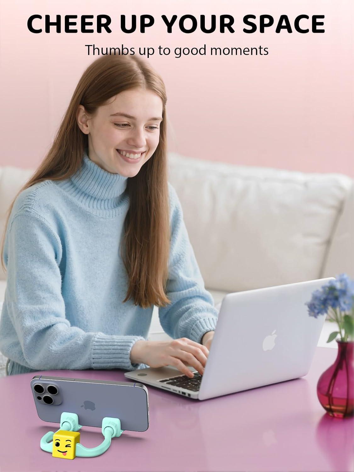 Stocking Stuffers for Teens Boys Girls Cell Phone Stand: Upgrade Adjustable Thumbs Up Lazy Phone Holder for Desk Fun Birthday Gifts for Grandma Adults Husband from Wife(Purple&Green&Blue&Pink)