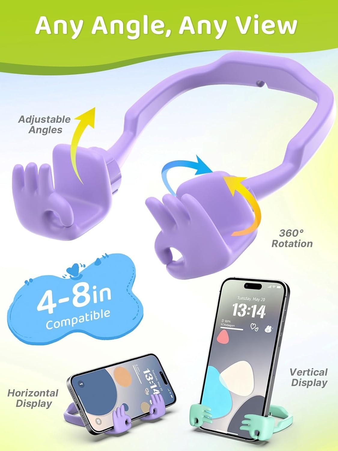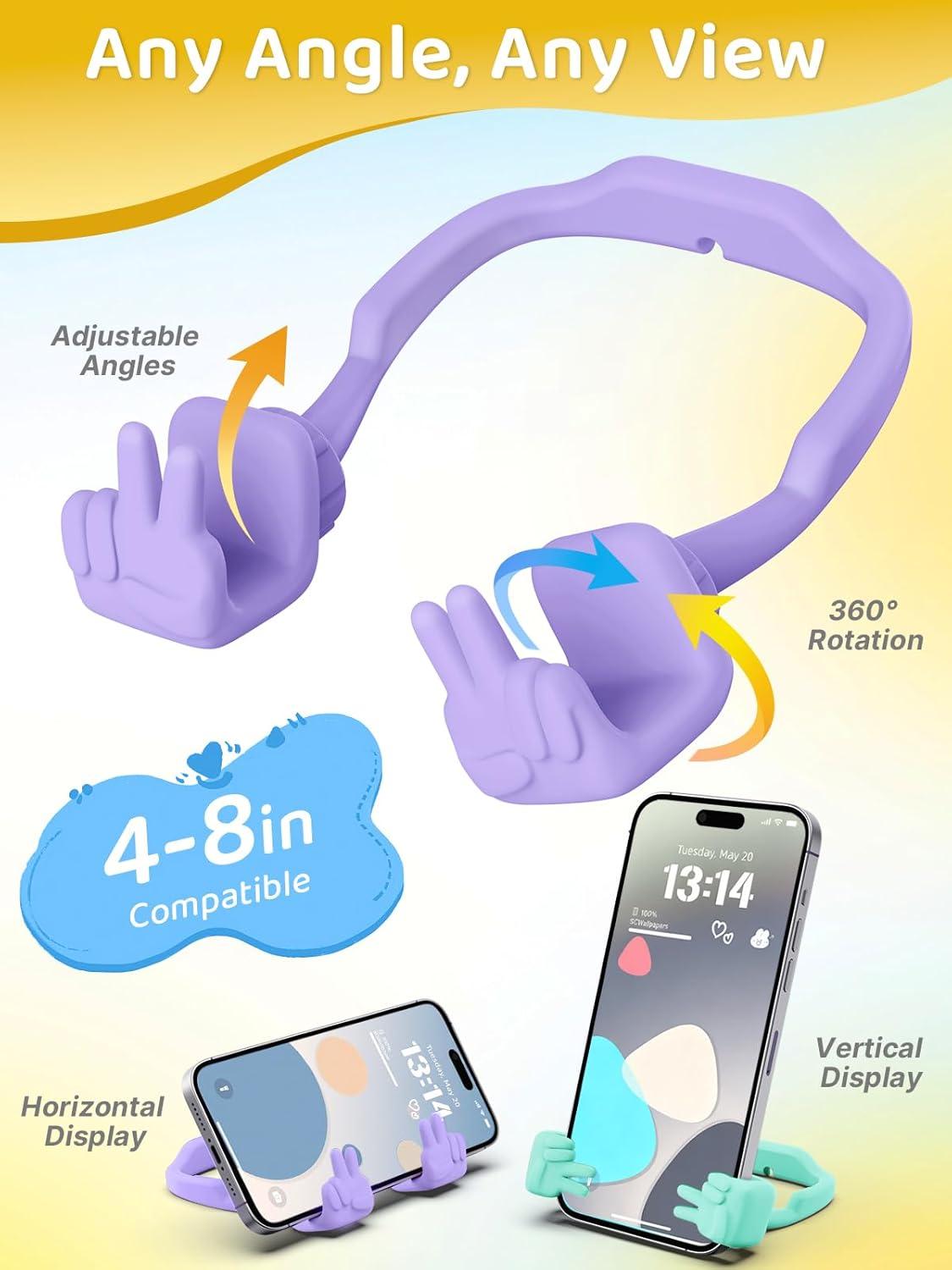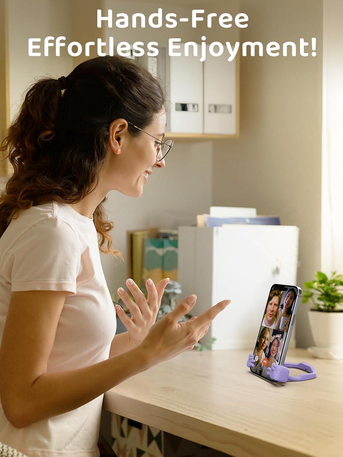 Cell Phone Stand Stocking Stuffers for Teens Boys Girls Kids Gifts: Upgrade Adjustable Peace Sign Thumbs Lazy Cell Phone Holder for Desk Cool Gadgets Birthday Gifts for Women Men Teenage Adults Wife(Purple)