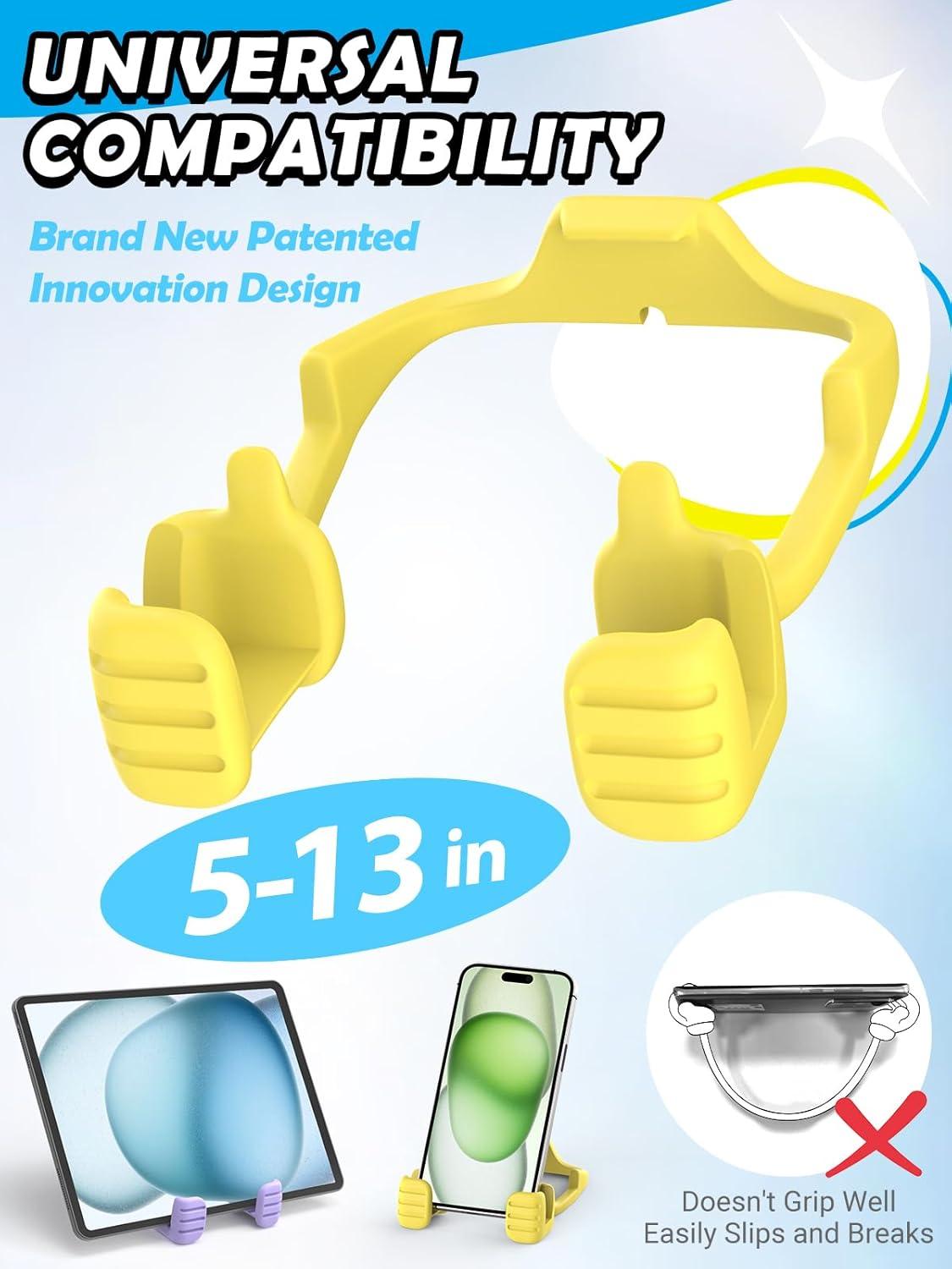 Stocking Stuffers for Teens Boys Men Adults for Kids Tablet Stand Thumbs Up Lazy Cell Phone Stand Holder for Desk Funny Gift for Women Girls Husband Wief Ideas Birthday Gadgets(Yellow)