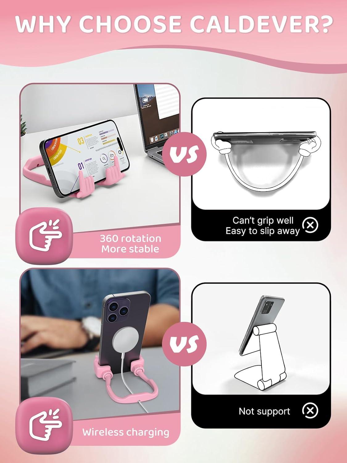 Stocking Stuffers for Teens Girls Boys Cell Phone Stand Patented Adjustable Shy Fingers Lazy Phone Holder for Desk Cool Gadgets Fun Gifts Ideas for Adults Women Gifts for Christmas (Pink)(Pink)
