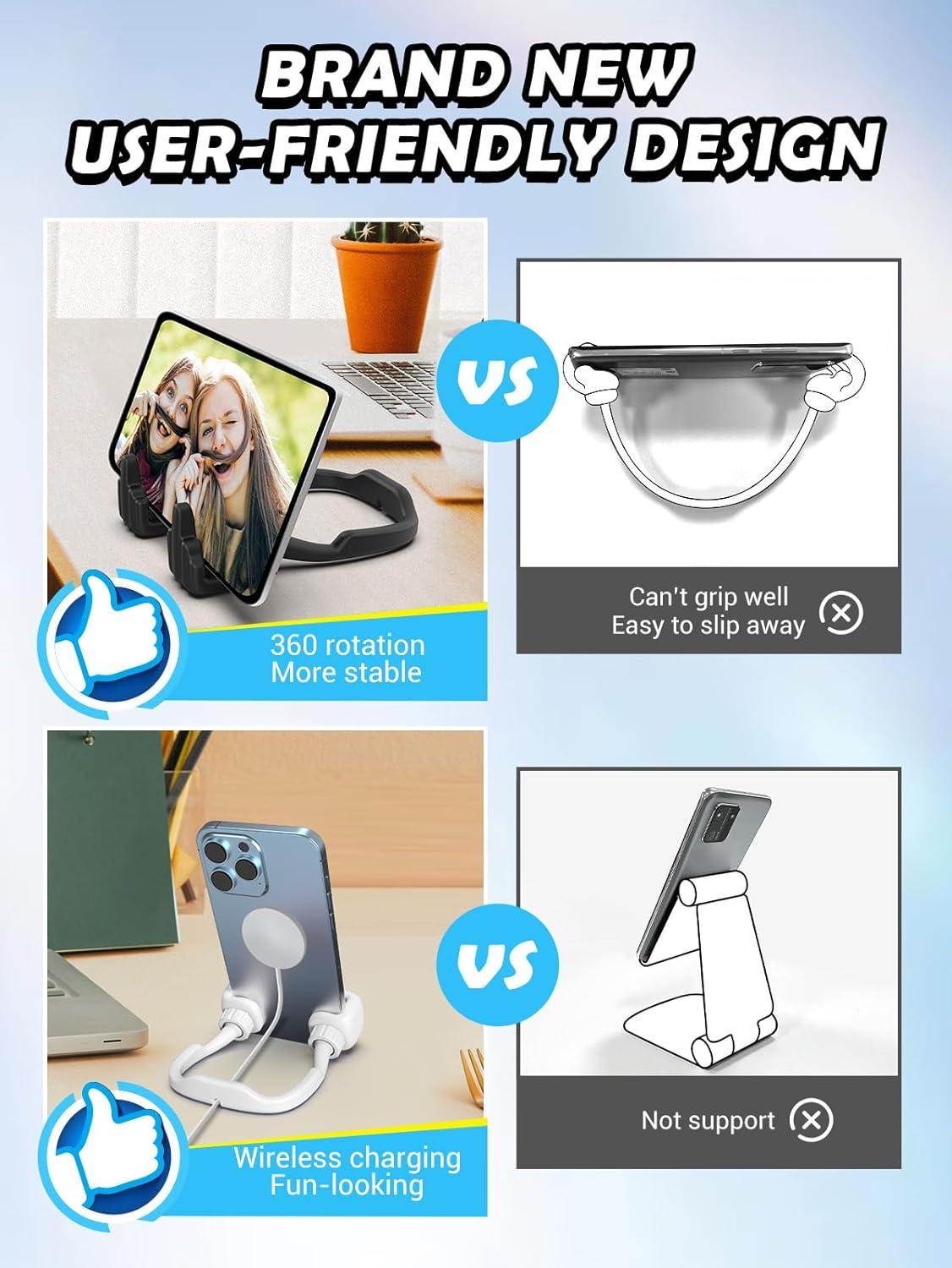 Stocking Stuffers for Teens Boys Men Adults for Kids Tablet Stand Thumbs Up Lazy Cell Phone Stand Holder for Desk Funny Gift for Women Girls Husband Wief Ideas Birthday Gadgets(Black+White)