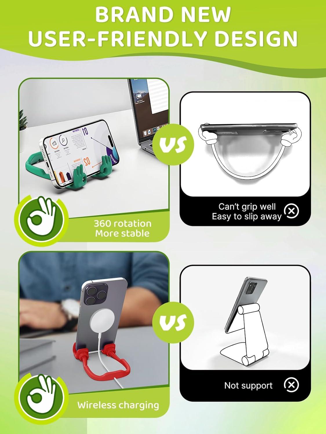 Stocking Stuffers for Teens Boys Girls Cell Phone Stand: Upgrade Adjustable Thumbs Up Lazy Phone Holder for Desk Fun Birthday Gifts for Grandma Adults Husband from Wife(Green)