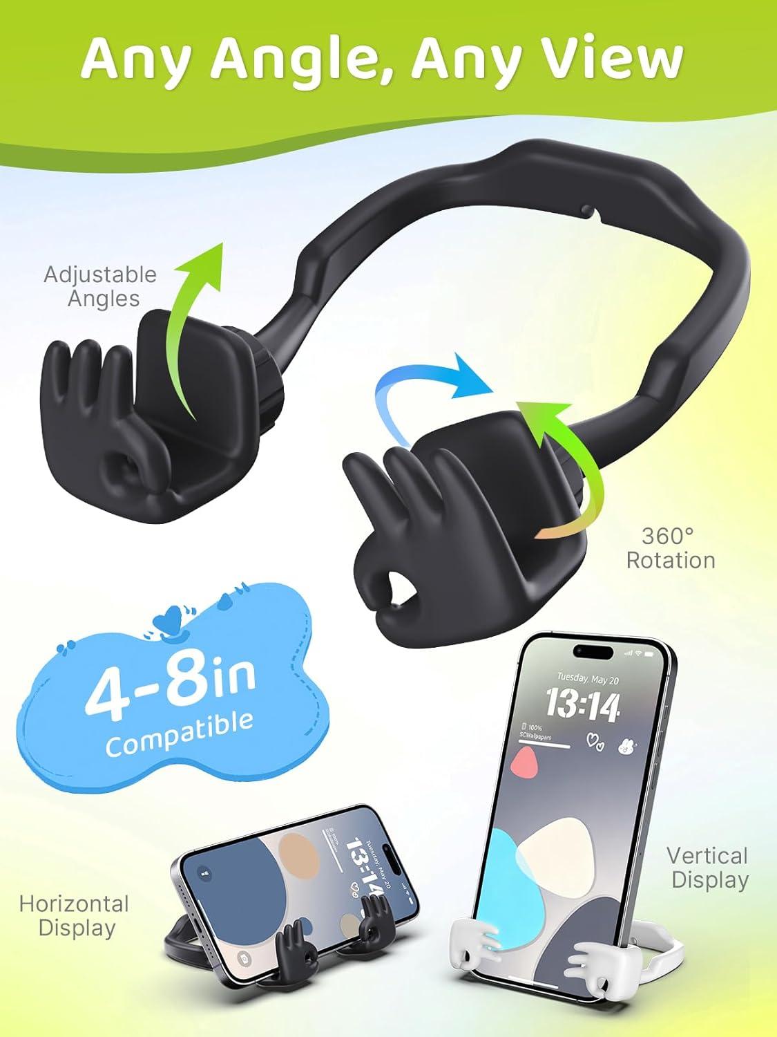 Stocking Stuffers for Teens Girls Gifts for Women Adults Christmas: Lazy Cell Phone Stand Unique Gesture Phone Holder for Desk Gift for Boys Men Cool Gadget Useful Funny White Elephant Gag Gifts(Black&White)