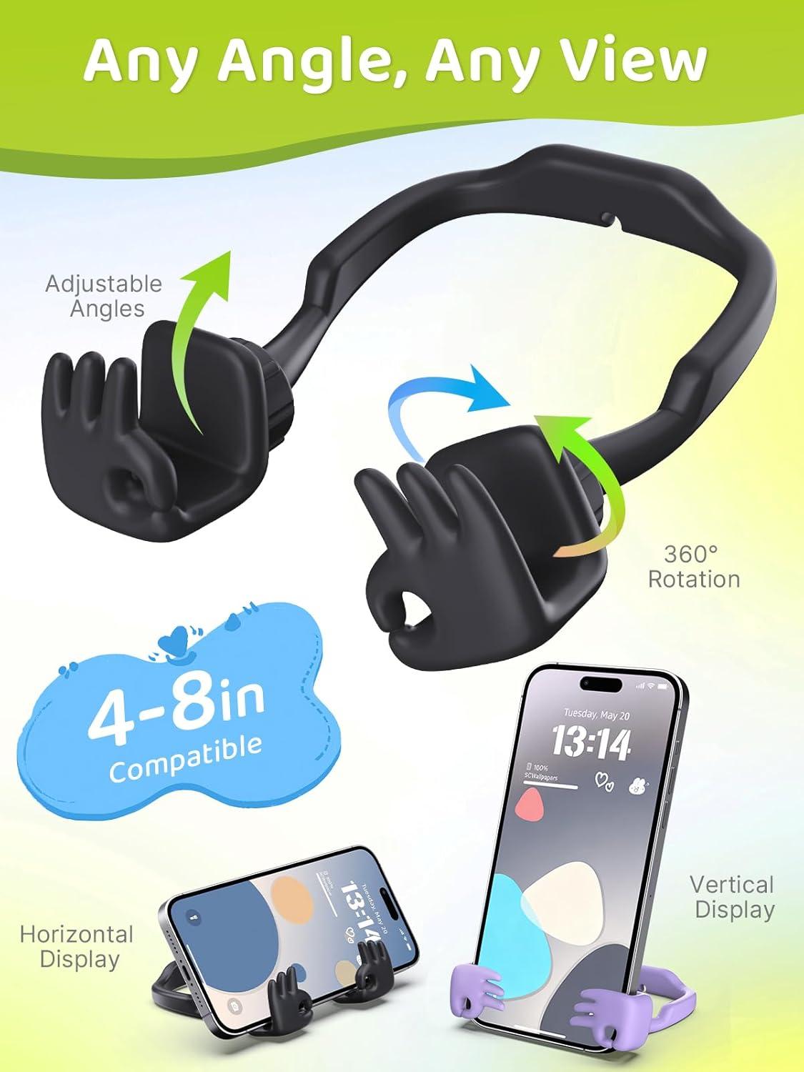 Stocking Stuffers for Teens Girls Gifts for Women Adults Christmas: Lazy Cell Phone Stand Unique Gesture Phone Holder for Desk Gift for Boys Men Cool Gadget Useful Funny White Elephant Gag Gifts(Black&Purple)