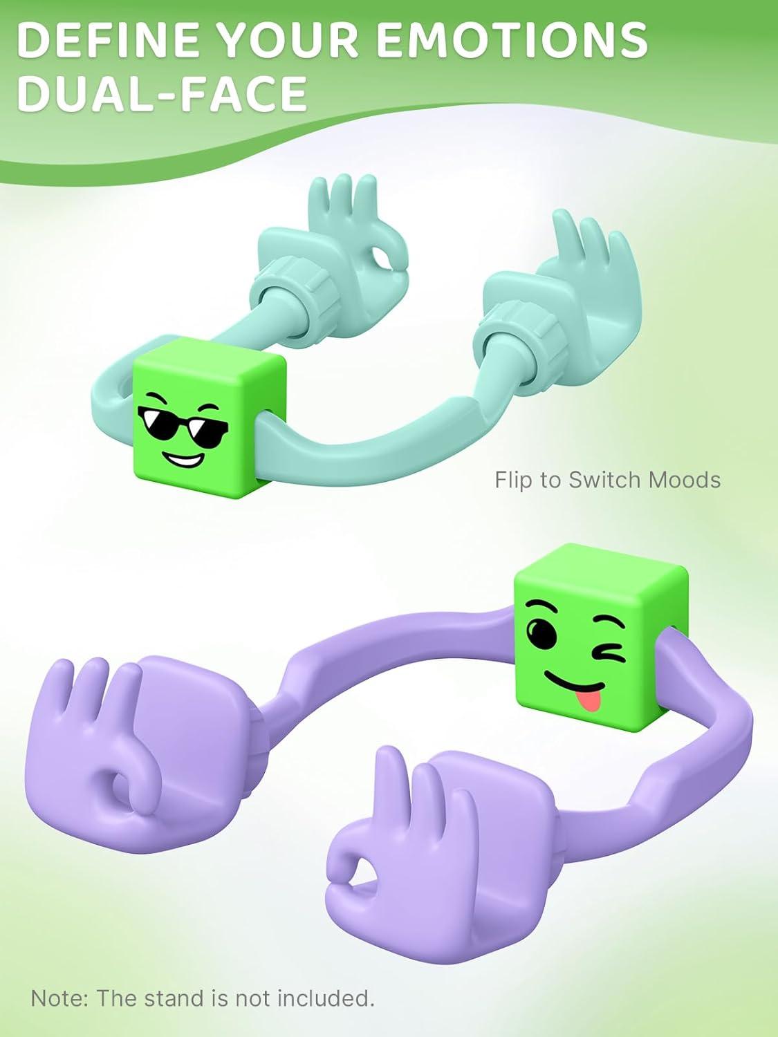 Dual-Sided Mood Cubes Phone Holder Clip for CALDEVER Gesture Series Phone Stand Accessory for Desk Stocking Stuffers for Teens Girls Boys Adults Emotional Cell Phone Holder Gifts for Women Men Kids(Yellow & Green)
