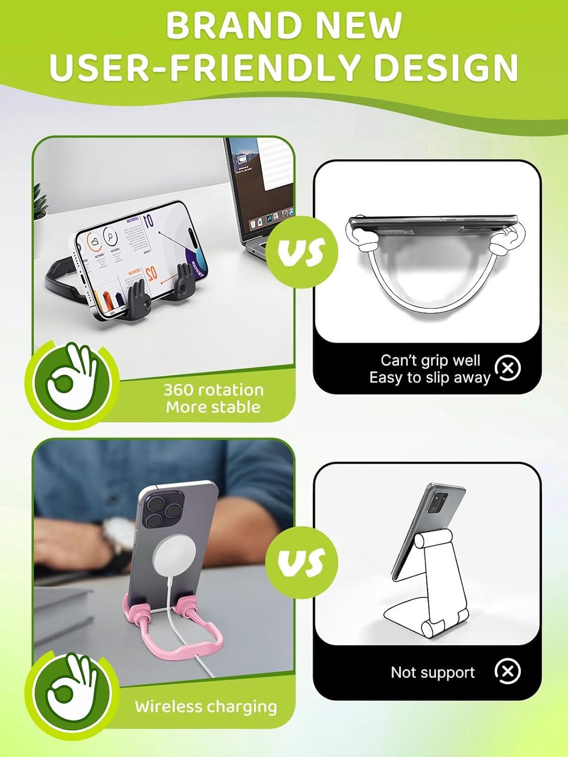 Stocking Stuffers for Teens Girls Boys Cell Phone Stand Patented Adjustable Shy Fingers Lazy Phone Holder for Desk Cool Gadgets Fun Gifts Ideas for Adults Women Gifts for Christmas (Pink)(black)