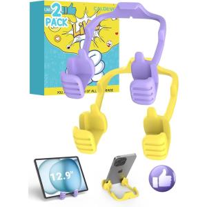Stocking Stuffers for Teens Boys Men Adults for Kids Tablet Stand Thumbs Up Lazy Cell Phone Stand Holder for Desk Funny Gift for Women Girls Husband Wief Ideas Birthday Gadgets(Purple+Yellow)