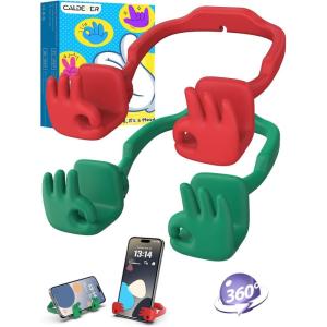 Stocking Stuffers for Teens Boys Girls Kids Cell Phone Stand: 2 Pack Upgrade Adjustable Peace Sign Thumbs Lazy Phone Holder for Desk Cool Gadgets Birthday Gifts for Women Men Adults (Black&Blue)(Forest Green&Red)