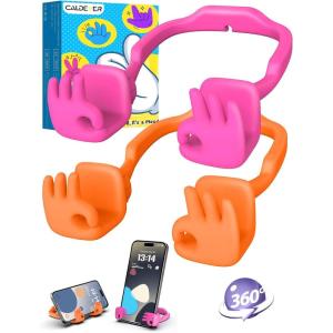 Stocking Stuffers for Teens Boys Girls Cell Phone Stand: Upgrade Adjustable Thumbs Up Lazy Phone Holder for Desk Fun Birthday Gifts for Grandma Adults Husband from Wife(Hot Pink & Orange Yellow)