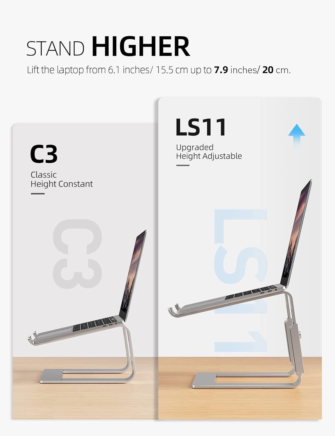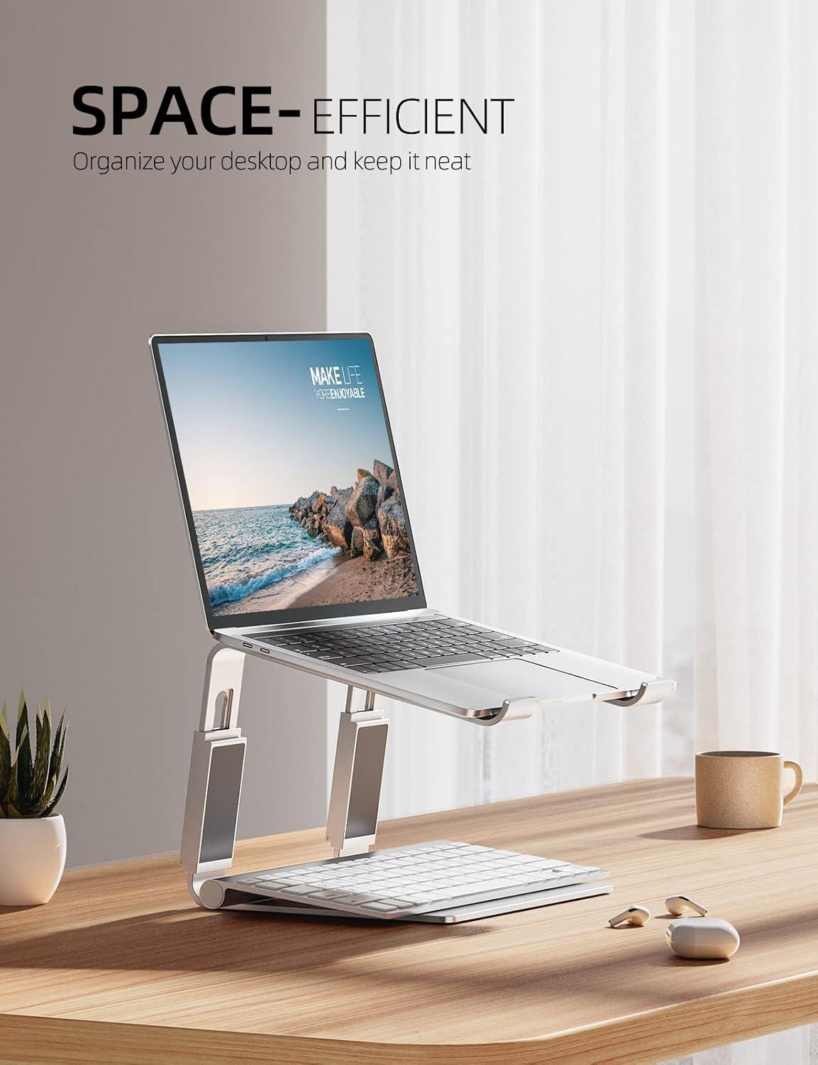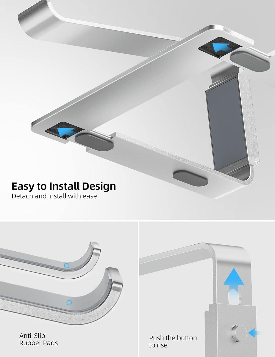 Nulaxy Laptop Stand Adjustable Height, Detachable Laptop Riser for Desk, Ergonomic Aluminum Computer Stand Holder Compatible with MacBook Air Pro, Dell XPS, HP, Lenovo More 10-16” Laptops, Silver