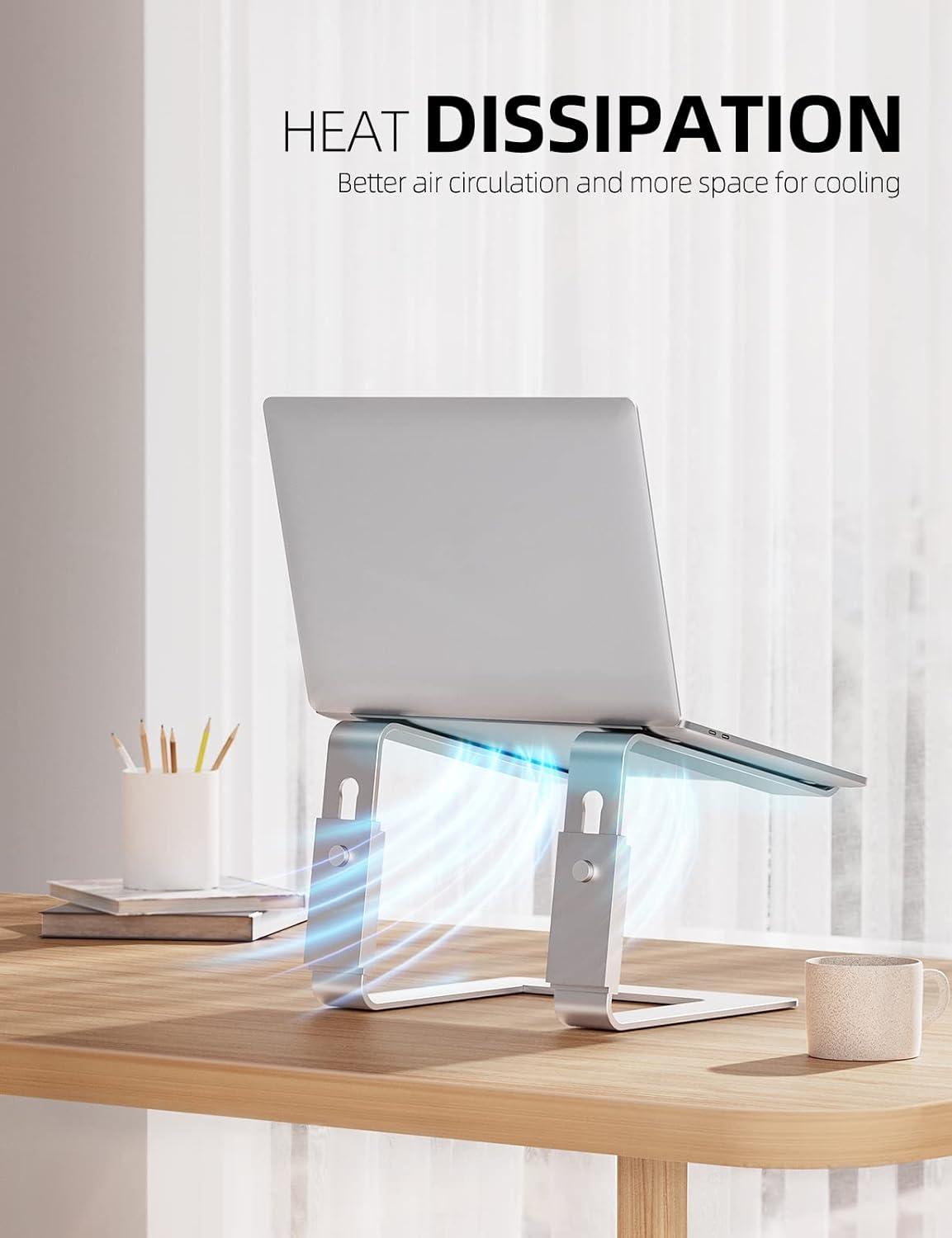 Nulaxy Fully Adjustable Laptop Stand for Desk, Dual Foldable Aluminum Computer Riser with Heat-Vent, Ergonomic Notebook Holder Portable Office Accessories Compatible with All 10-17″ Laptops, Silver(A-Silver)