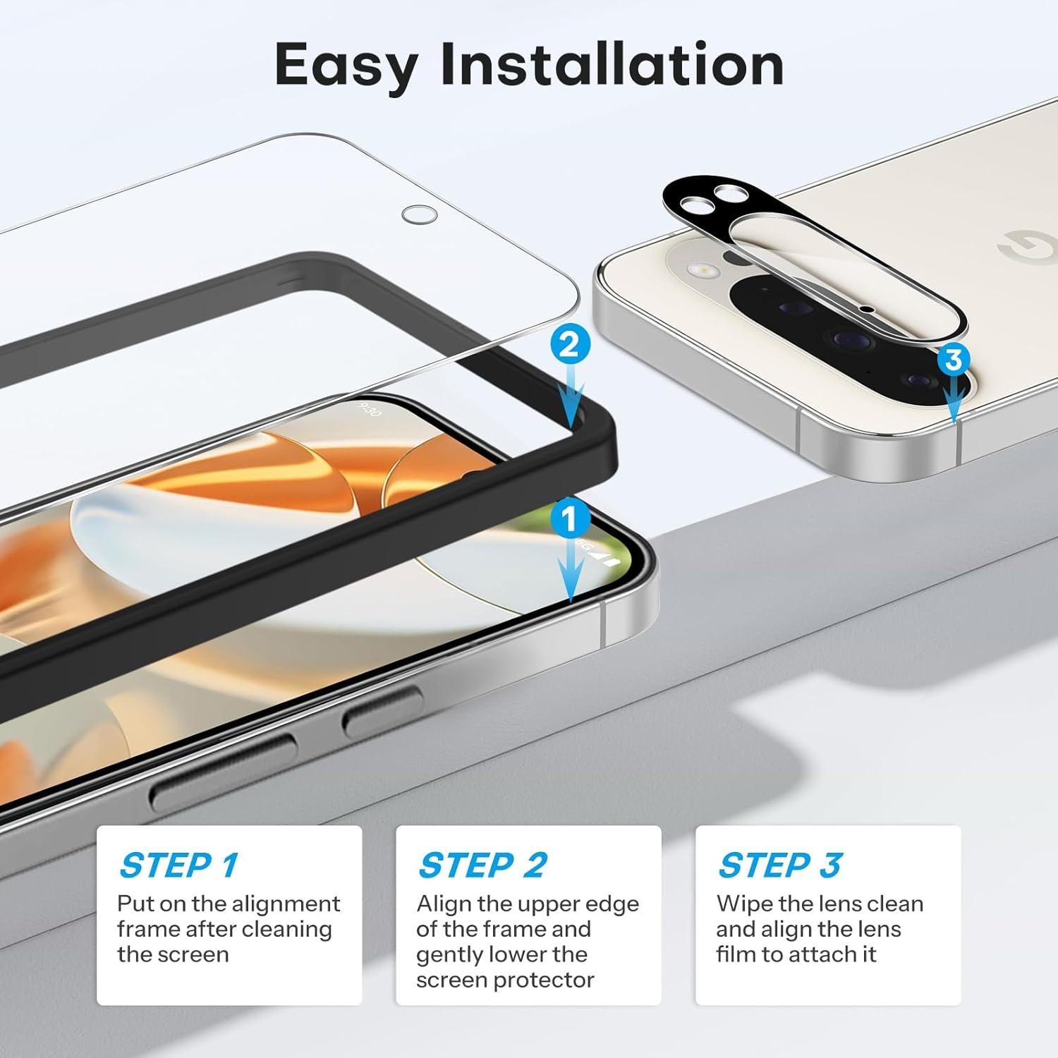 OMOTON 3+2 Pack for Google Pixel 10 Pro XL Screen Protector 6.8 Inch 2025, 3 Tempered Glass Film and 2 Camera Lens Protector, Bubble-free, Easy Installation, Not for Pixel 10 Pro/ 10(Pixel 9 pro-6.3 inch)