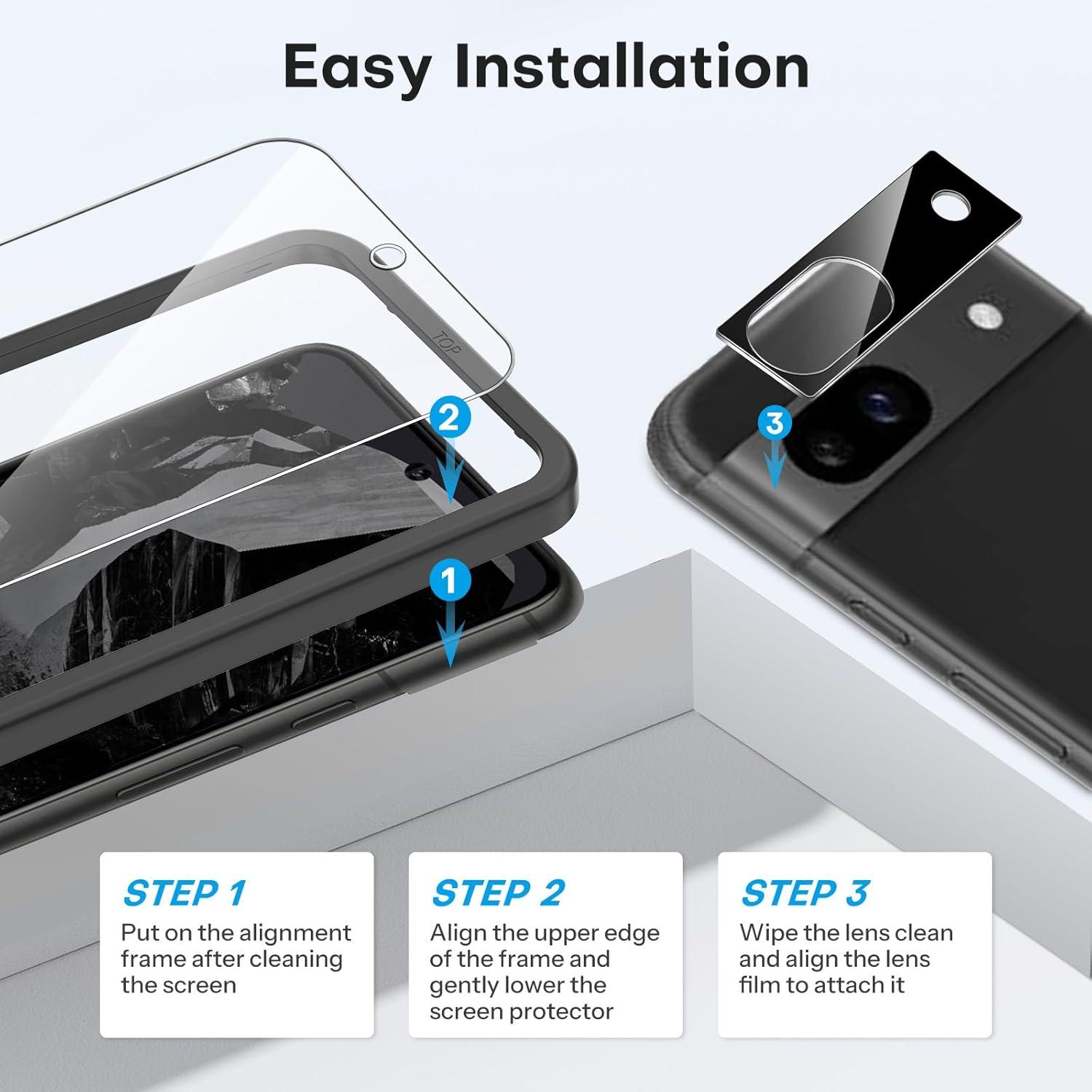 OMOTON 3+2 Pack for Google Pixel 10 Pro XL Screen Protector 6.8 Inch 2025, 3 Tempered Glass Film and 2 Camera Lens Protector, Bubble-free, Easy Installation, Not for Pixel 10 Pro/ 10(Pixel 7a – 6.1 Inch)