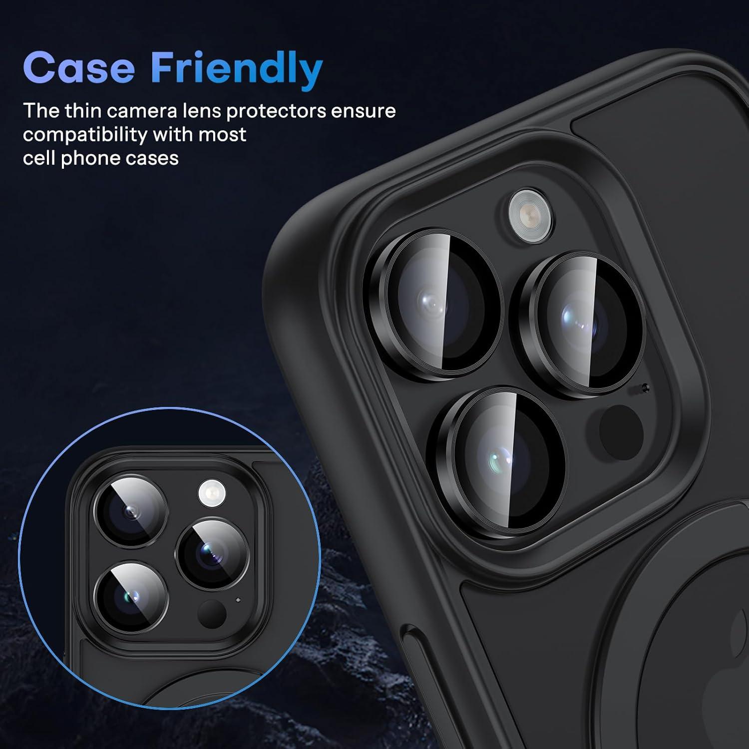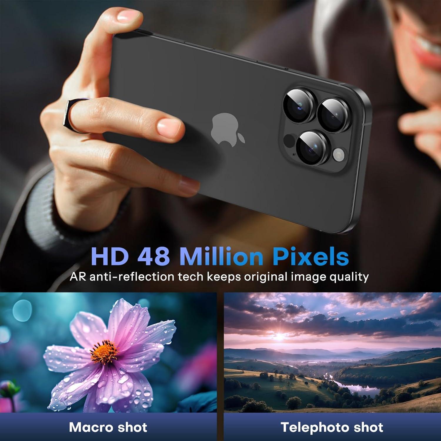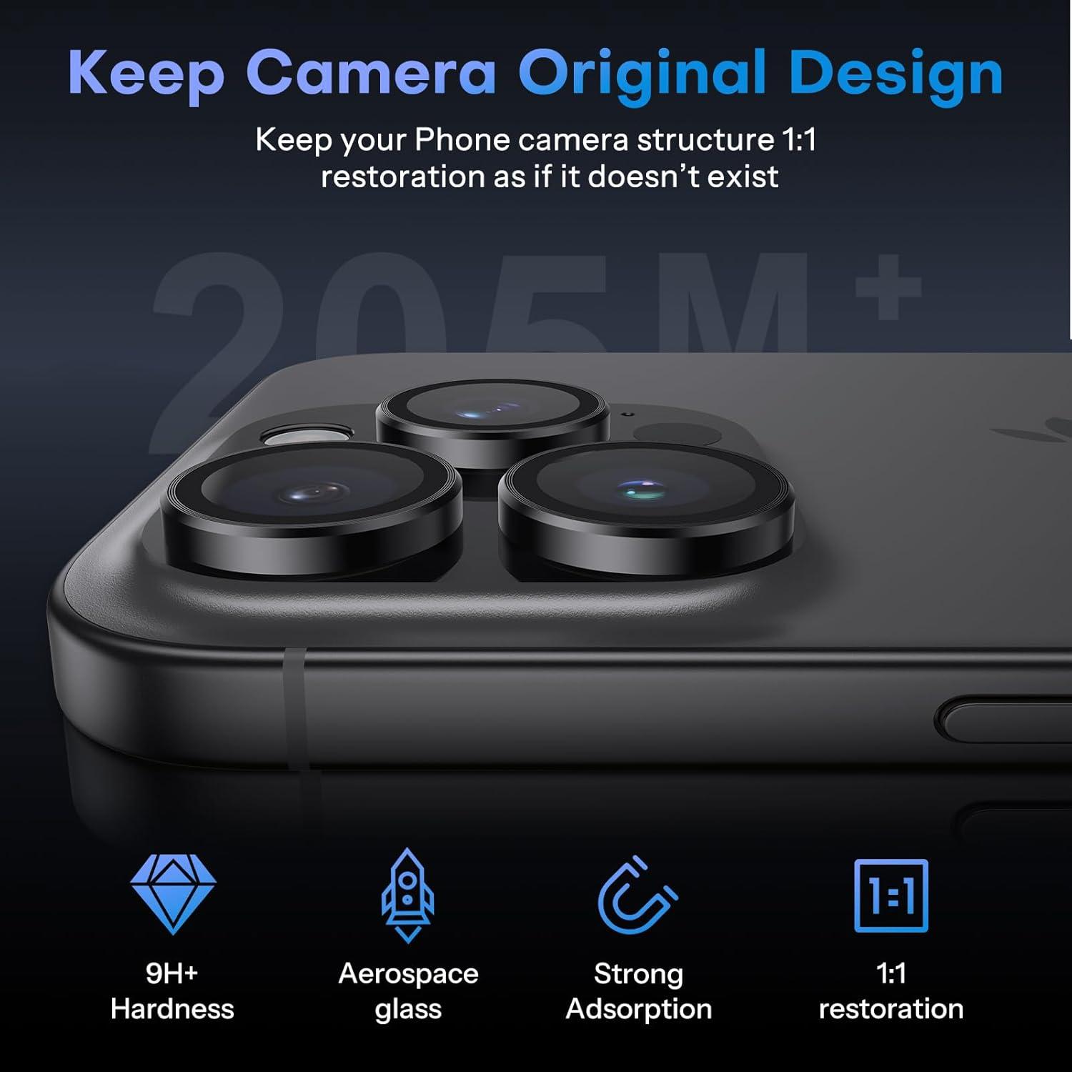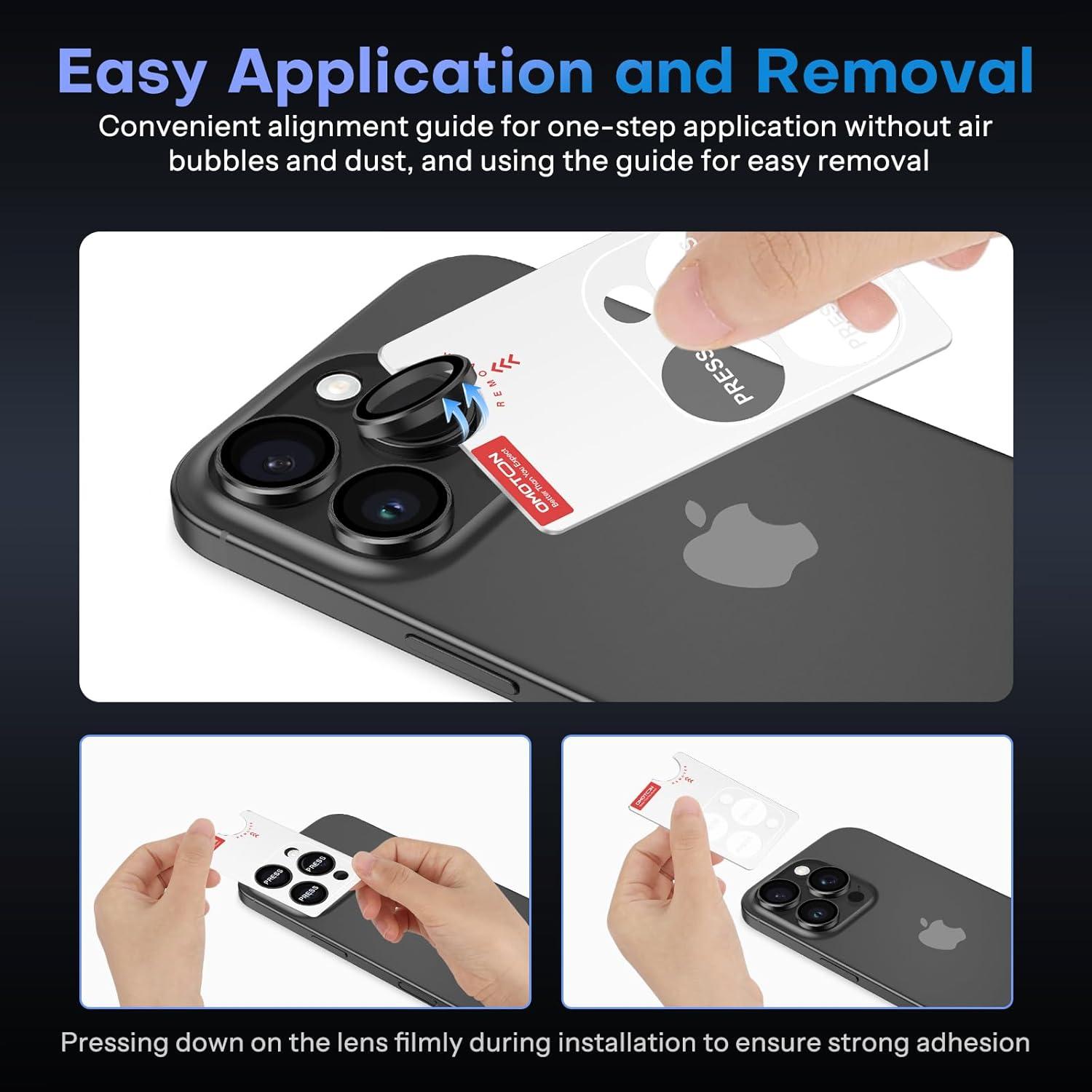 OMOTON Clear Camera Lens Protector for iPhone 16 Pro Max/16 Pro, Individual Camera Lens Protector, High-definition Photos, Ultra-thin Tempered Glass Lens Protector, 2 Set Transparent Ring(Black)
