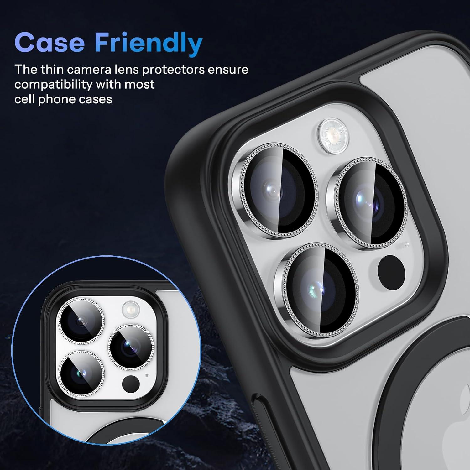 OMOTON Clear Camera Lens Protector for iPhone 16 Pro Max/16 Pro, Individual Camera Lens Protector, High-definition Photos, Ultra-thin Tempered Glass Lens Protector, 2 Set Transparent Ring(Silver Glitter)
