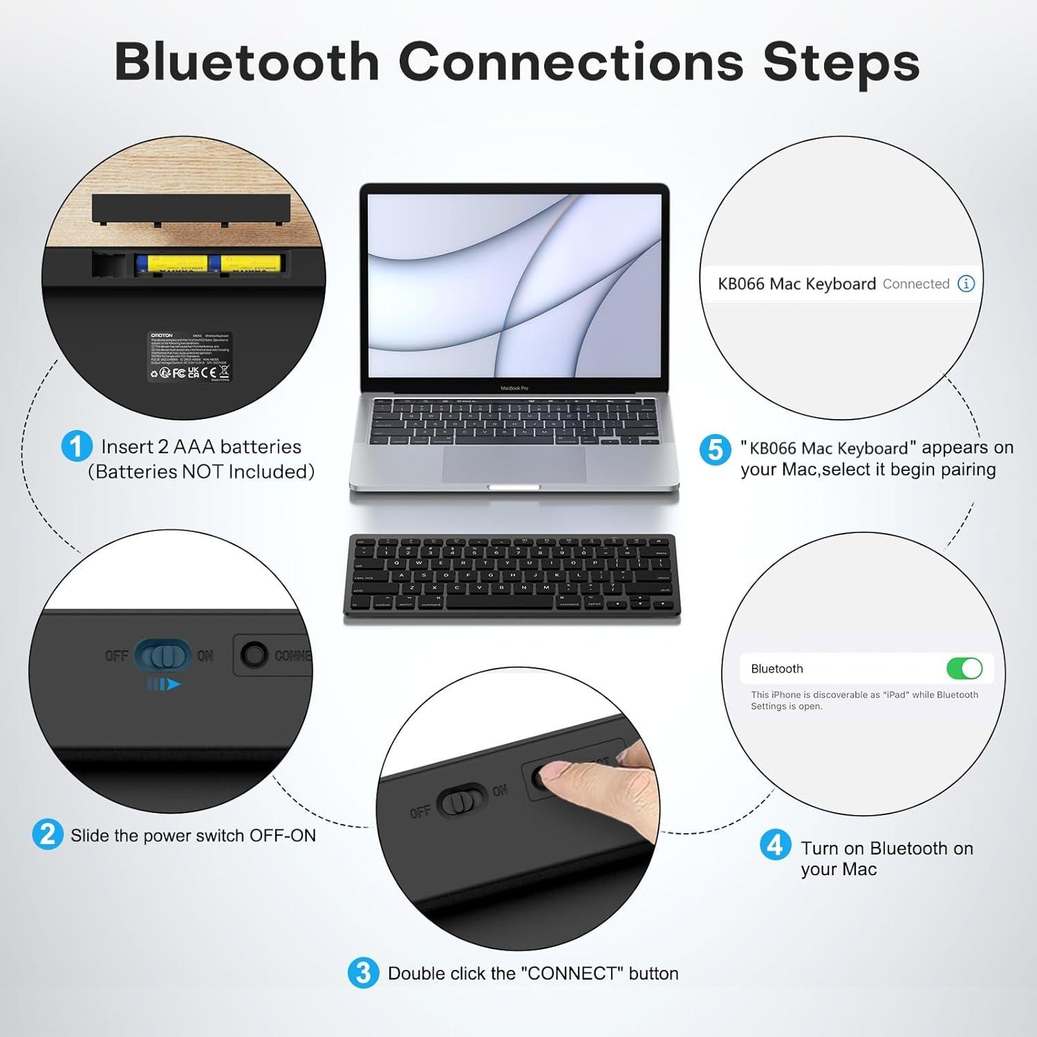 OMOTON Bluetooth Keyboard Compatible with Mac ONLY, Compact Wireless Keyboard Compatible with MacBook Pro/Air, iMac, Mac mini/Pro Laptop and PC (Silver)(Dark Black)