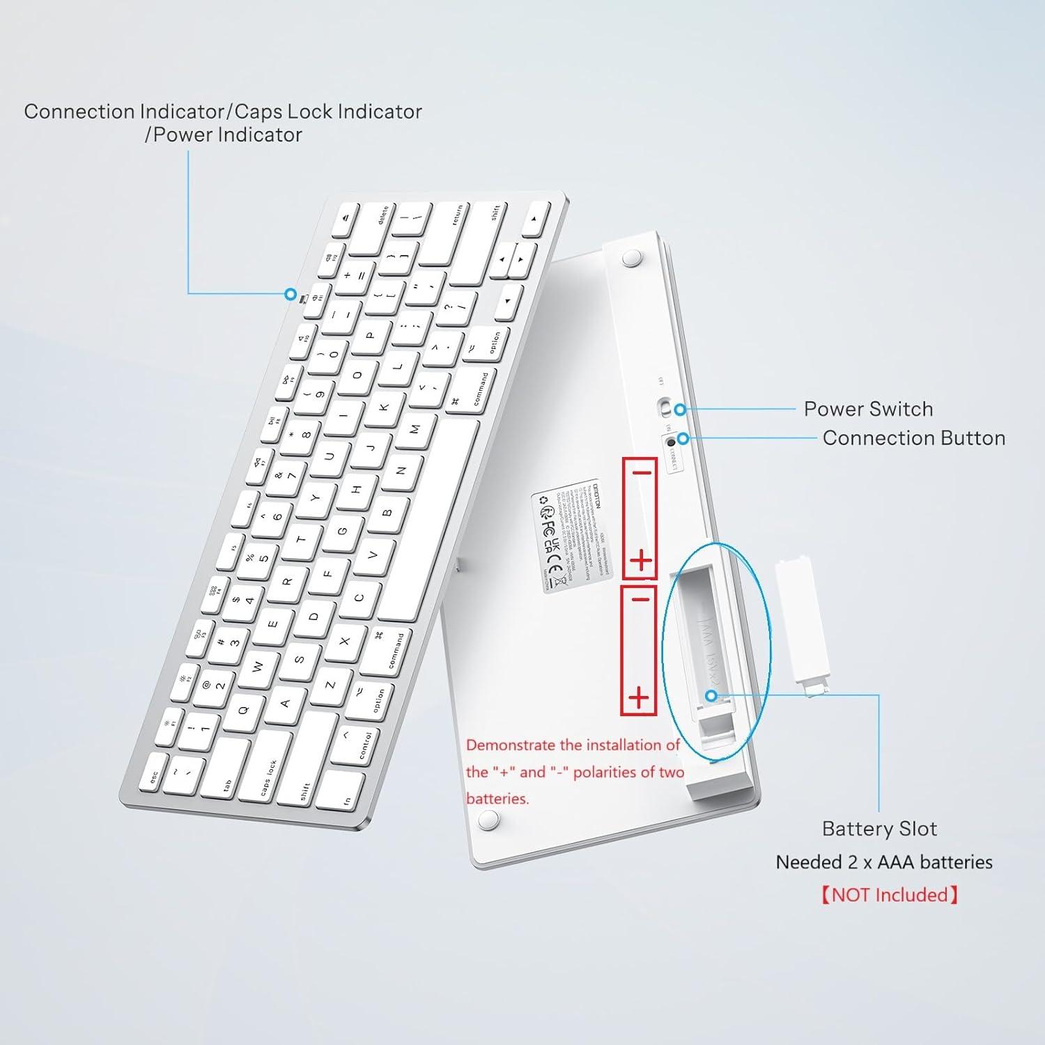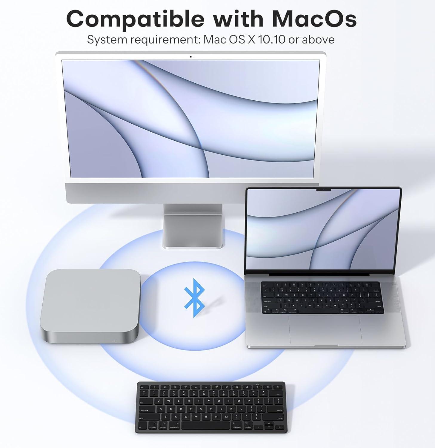 OMOTON Bluetooth Keyboard Compatible with Mac ONLY, Compact Wireless Keyboard Compatible with MacBook Pro/Air, iMac, Mac mini/Pro Laptop and PC (Silver)(Silver)